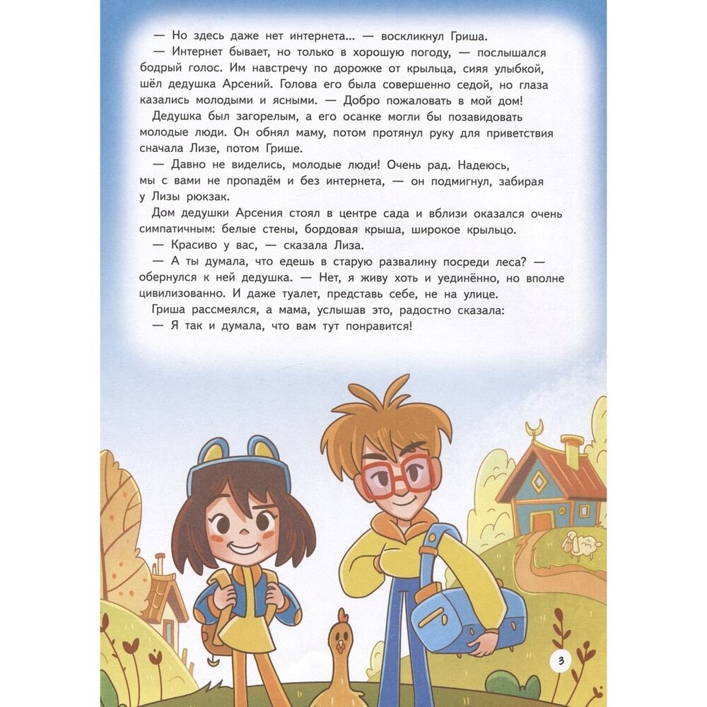 Арктика, как и все объективно далекие места от общего населения, одинаково интересные и пугающие, и все от неизвестности. По ходу чтения мы не только понимаем, что Арктика - просто удивительное место, но и узнаем действительно много нового. Мы узнаем про города нашей страны, находящиеся за полярным кругом и про их особенности местоположения. Дедушка, к слову, ученый-океанолог, то есть, что ни на есть лучший экскурсовод для нас в этих рамках. Он рассказывает про вечную мерзлоту и необходимость строить дома на сваях, знакомит нас с удивительными обитателями Арктики, коренным народом и их особенностями. Теперь мы знаем о том, как составляется собачья упряжка, их быт, а так же как живут белые медведи. Ребята добрались и до полярных станций, увидели ледокол и побыли в гостях у Якутов. Уж слишком быстро и просто передвигались? Ну, не обошлось и без магии. С точки зрения оформления хочу сказать, что иногда картинки занимают действительно много места на странице, хотя не несут в себе сильной информации, а иногда целый разворот заполнен текстом, и жаль, что этот текст - описание животных или просто то, что сейчас по идее перед глазами героев, где как раз очень сильно не хватает иллюстраций.