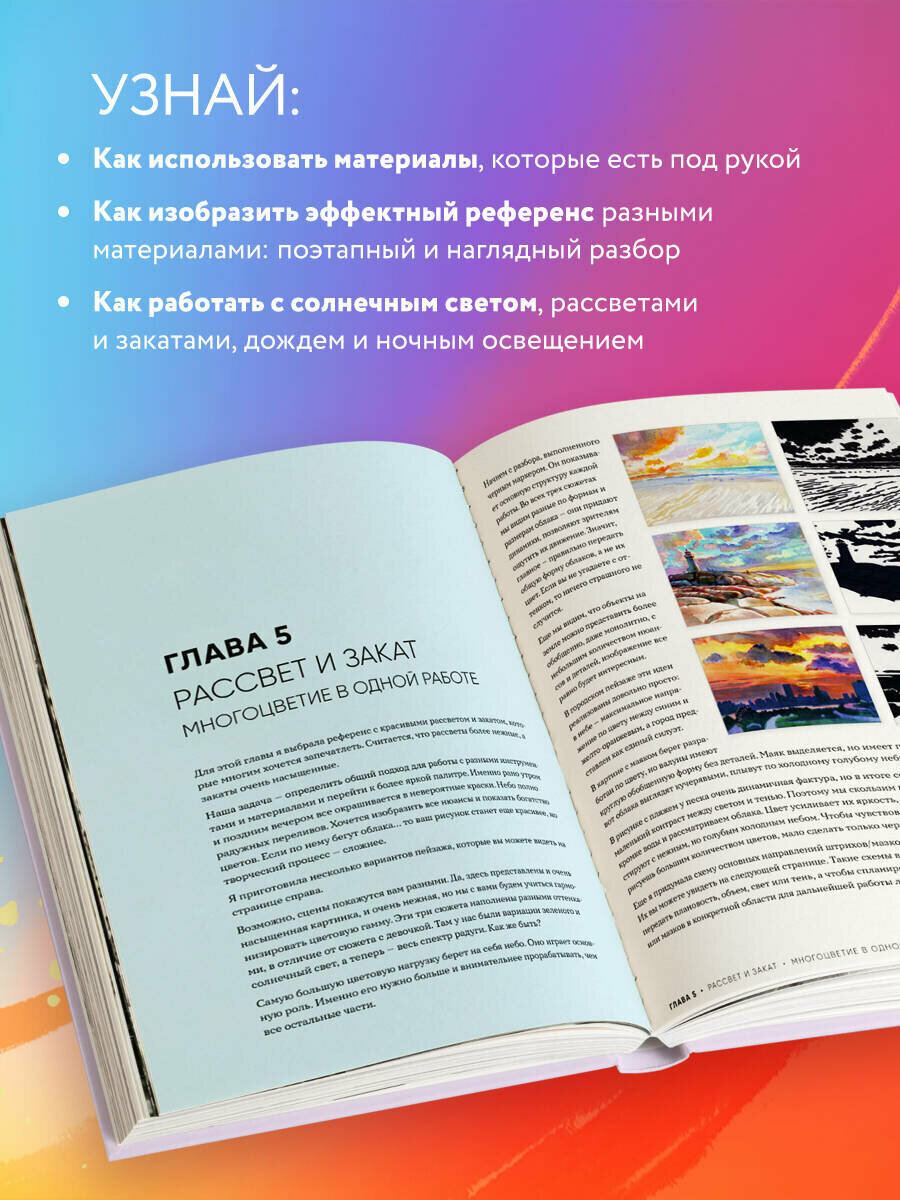 Книгу заказала, как только объявили предзаказ, и не пожалела! С творчеством Анны знакома давно по курсам школы Kalacheva School и точно знаю, что еe суперспособность - умение всe систематизировать и разложить на понятные этапы. В книге множество иллюстраций, есть и теория и философия и подробнейшие уроки с объяснением, почему надо делать именно так, после которых полученные знания можно применять в самостоятельных работах. Эта книга поможет решиться попробовать новые материалы или найти что-то новое в давно знакомых, таких как гуашь и цветные карандаши. Отдельное спасибо за маяк на обложке книги!