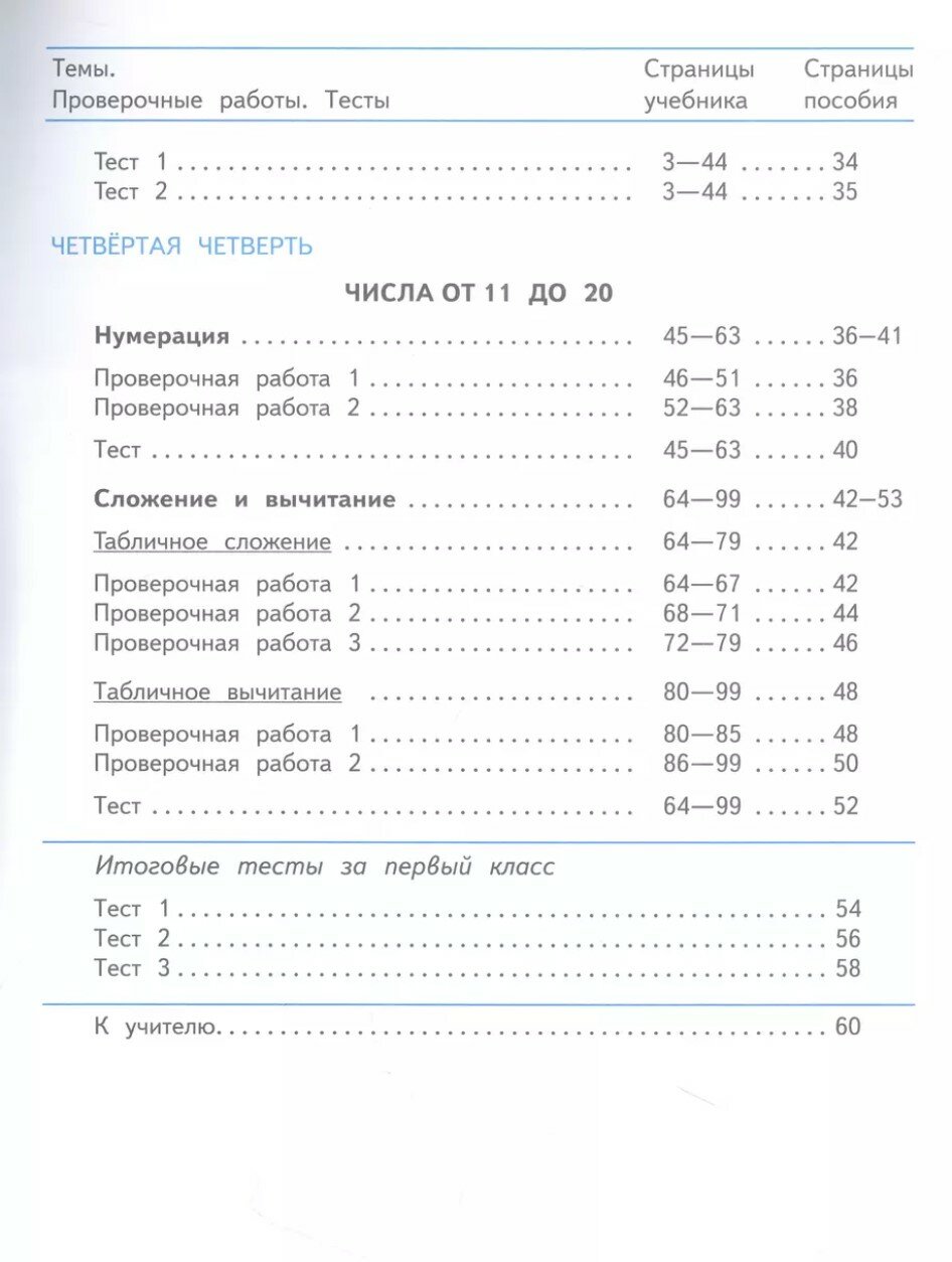Проверочные работы составлены по отдельным, наиболее важным вопросам каждой темы первого года обучения, тесты обеспечивают итоговую проверку по изученной теме.