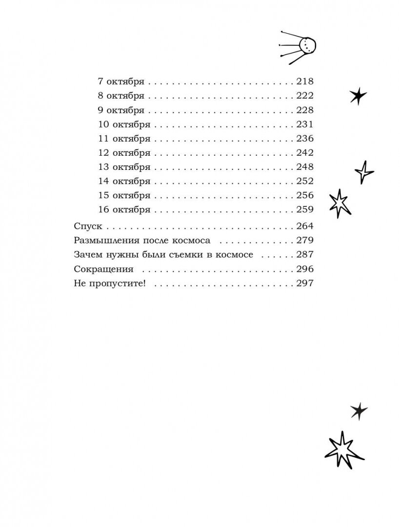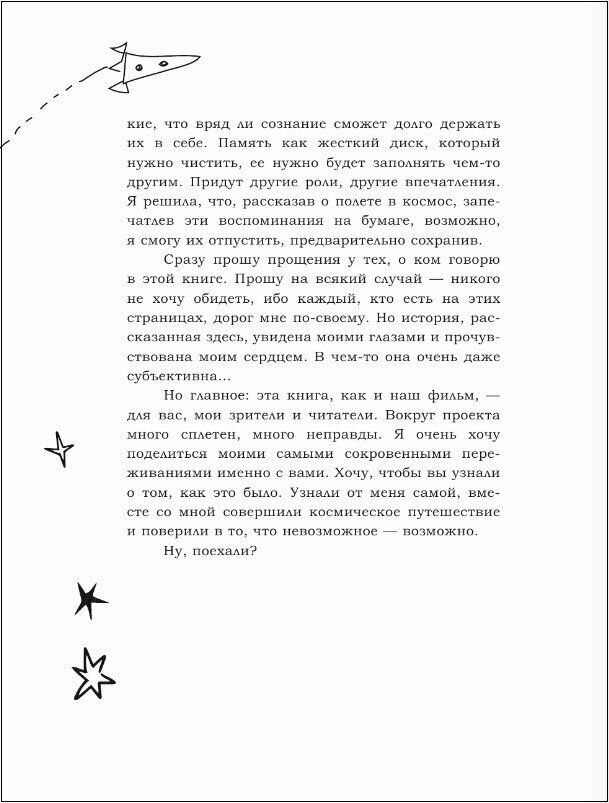 Увлекательная книга о первом полете в космос для съемок художественного фильма! Юлия Пересильд, исполнительница главной роли в блокбастере «Вызов», рассказывает о том долгом пути, который ей пришлось пройти, начиная от отбора, медкомиссии и изнурительных тренировок в Центре подготовки космонавтов до самого полёта, пребывания на борту МКС и возвращения на Землю! О том, как невесомость меняет съёмки кино — из первых уст!