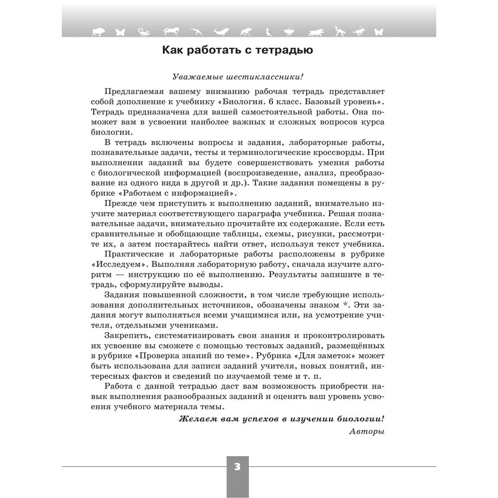 Рабочая тетрадь является составной частью учебно-методического комплекта серии "Линия жизни" для 6 класса под редакцией В. В. Пасечника и адресована учащимся, занимающимся по учебнику этой линии.