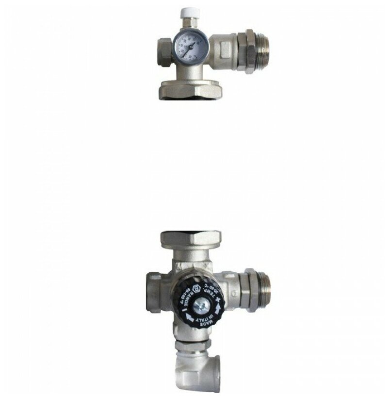 - 4-х ходовой термостатический смесительный клапан: корпус – латунь CB753S, рабочая пружина – нержавеющая сталь AISI 302, уплотнения ? EPDM