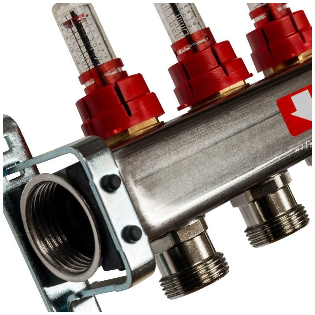 Коллектор с расходомерами STOUT (Стоут) предназначен для равномерного распределения теплоносителя по контурам в системах водяного отопления и теплого пола. Модель выполнена из современной нержавеющей стали и латуни, что обеспечивает высокую прочность и надежную защиту от коррозии. Коллектор оборудован расходомерами, позволяющими отключать или перекрывать каждый отдельный контур системы.