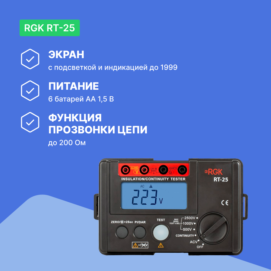Сервис сравнения цен СкидкаГИД предлагает сравнить цены на товар «Мегаомметр RGK с поверкой RT-25»