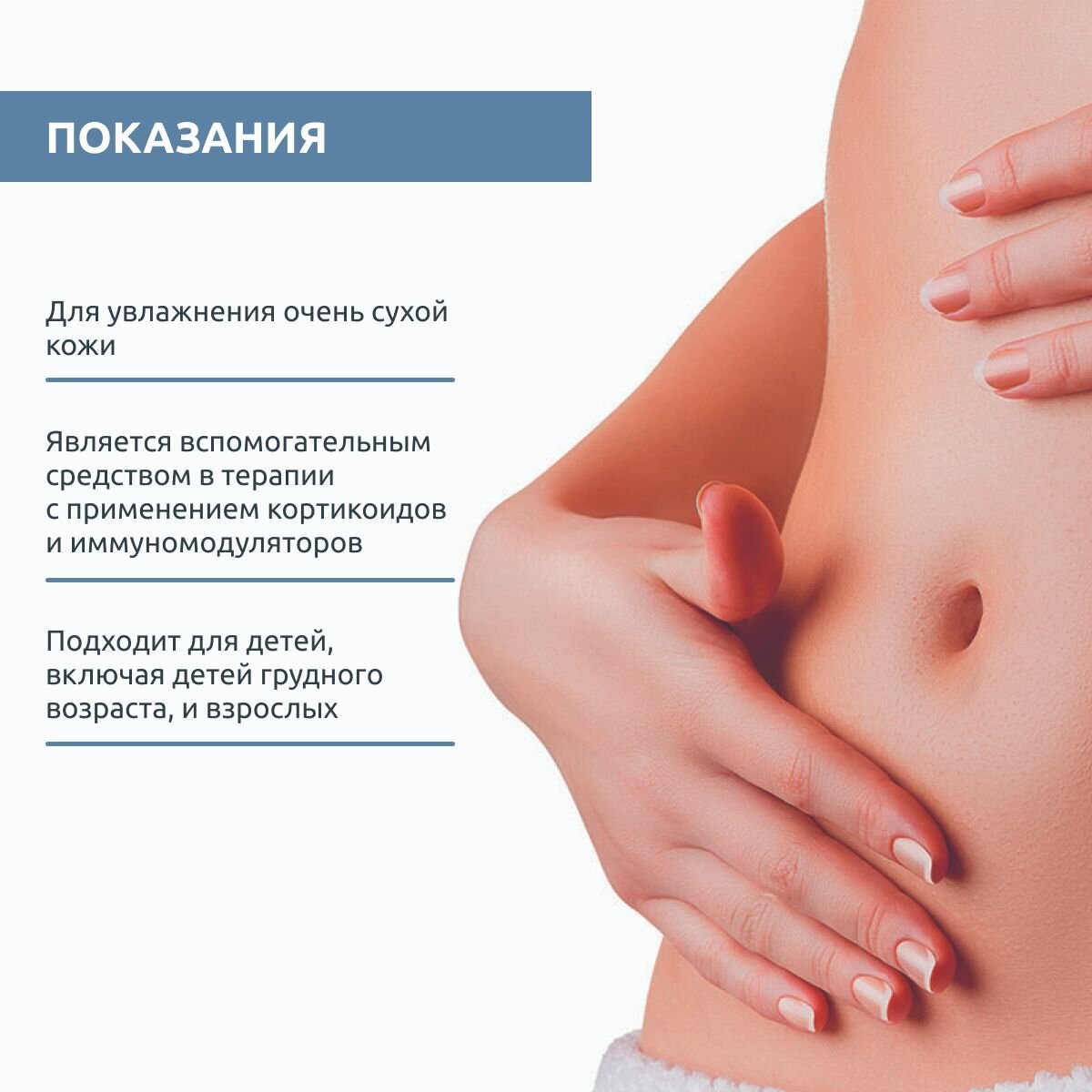 Показания: ежедневная гигиена кожи, склонной к атопическому дерматиту или сухости. Дополнительное средство при терапии кортикостероидами и иммуномодуляторами. Подходит для младенцев, детей и взрослых.