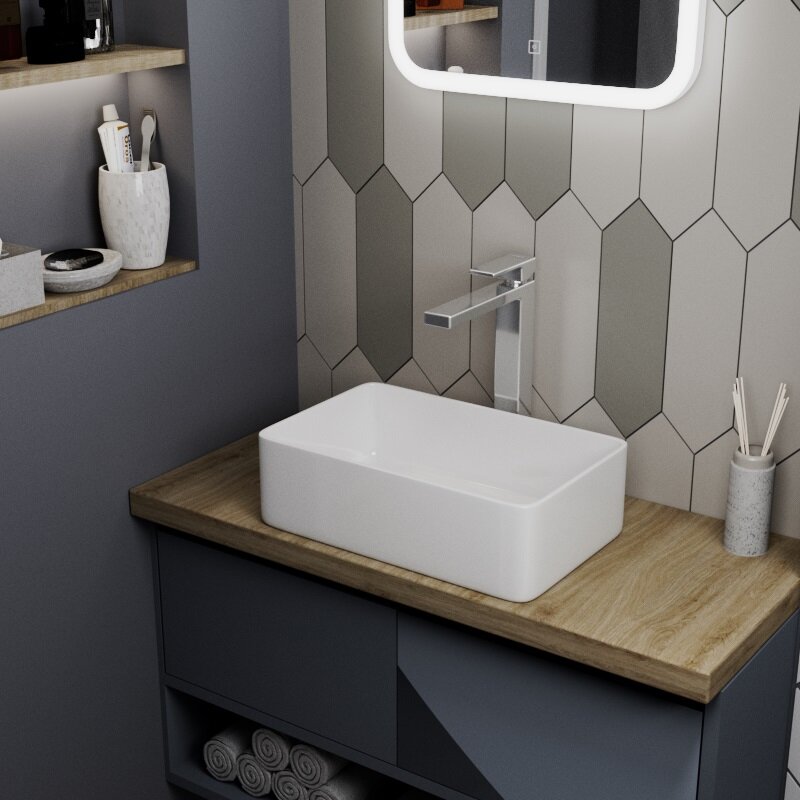 Раковина D&K Berlin 38х24 DT1430816. Коллекция накладных раковин Berlin - тщательно проработанный дизайн с выбором популярных цветовых решений поможет создать идеальную ванную комнату с благородной белой накладной раковиной в классическом стиле. Накладные раковины торговой марки D&K производятся из керамического фарфора. Фарфор, как и фаянс, изготавливается на основе белой глины. Состав этого материала отличается повышенной прочностью благодаря добавлению таких укрепляющих компонентов, как кварц и полевой шпат. Используемая для создания основы глина проходит тщательную проверку качества, что обеспечивает итоговой продукции плотную и сверхгладкую поверхность. В отличие от фаянса, фарфоровые сантехнические устройства имеют небольшой коэффициент водопоглощения. Для фарфора свойственен коэффициент водопоглощения в 0,05%. Температура обжига 1280гр. Накладные раковины D&K отличаются: высоким уровнем механической прочности; плотной структурой, обеспечивающей устойчивость к различным загрязнениям; простой и легкий уход.