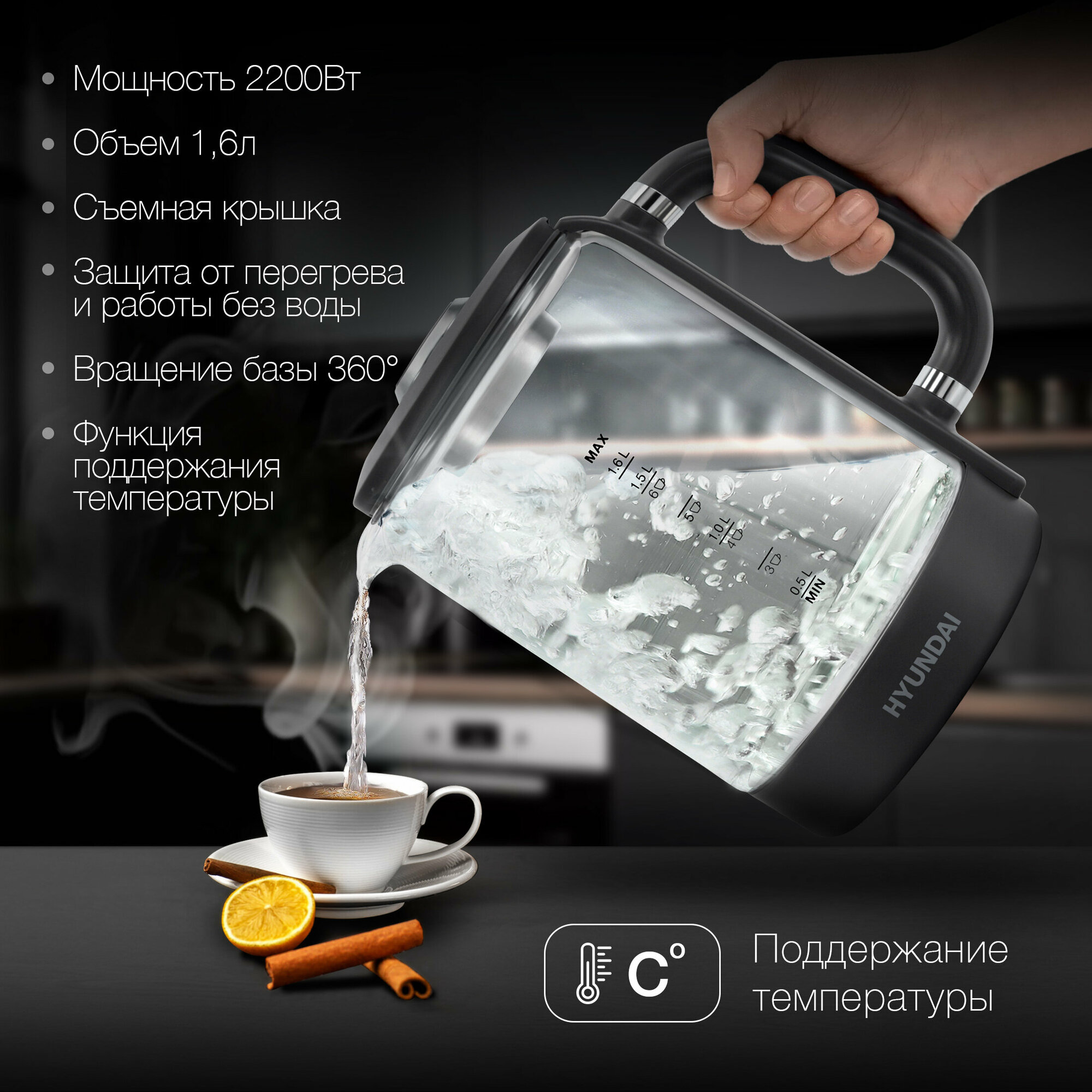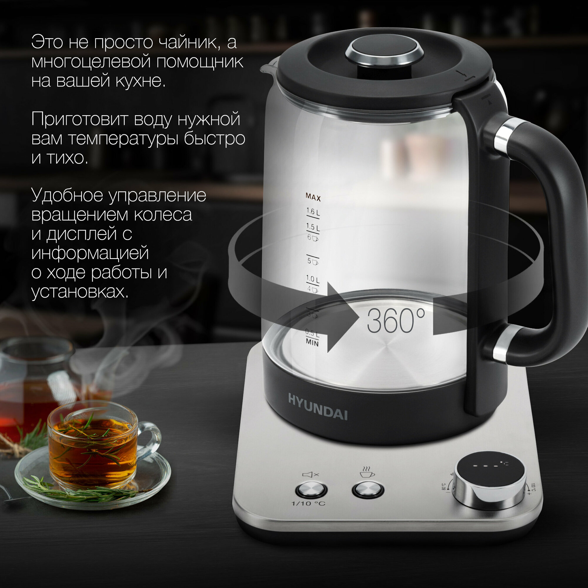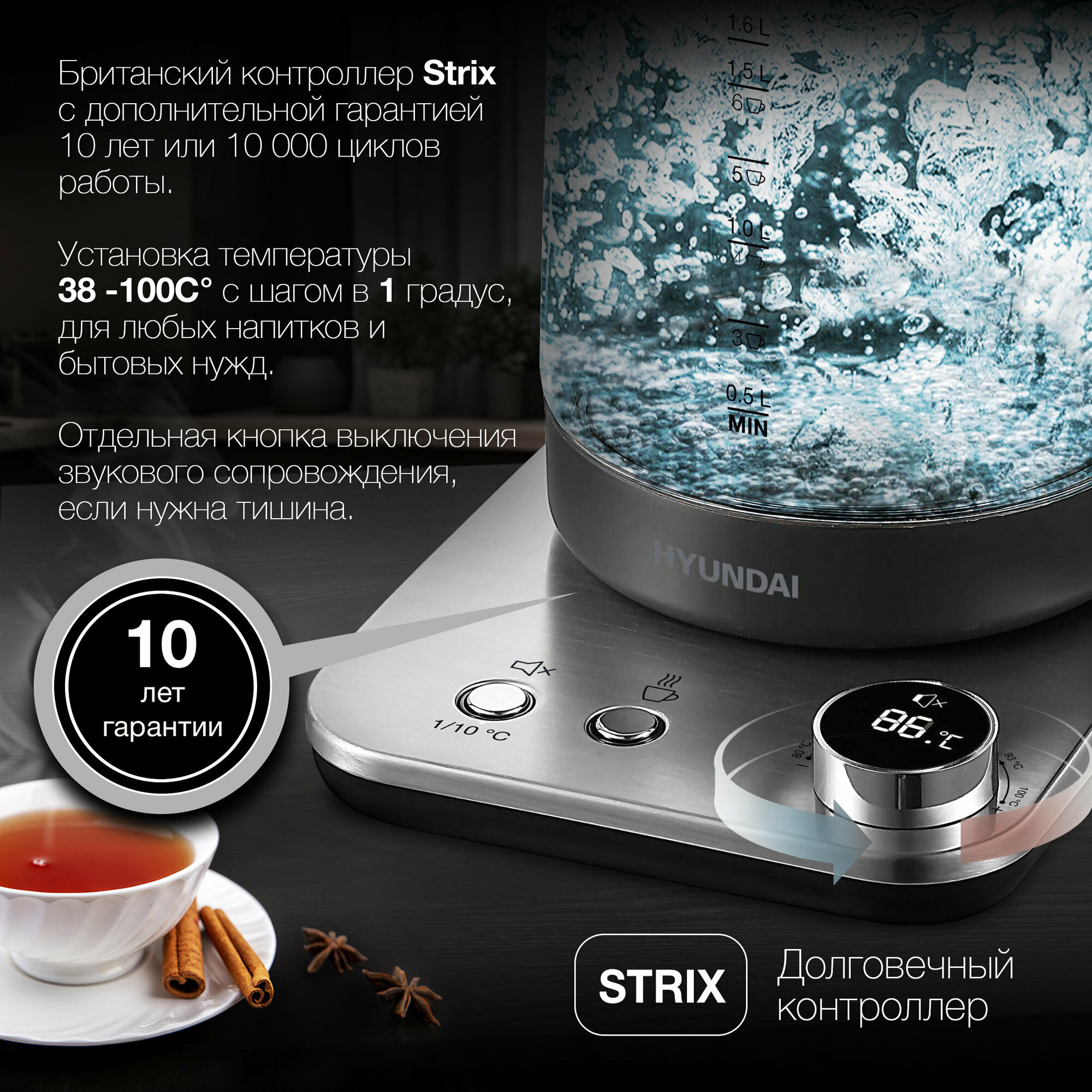 Чайник электрический Hyundai HYK-G5401 серый/серебристый стекло