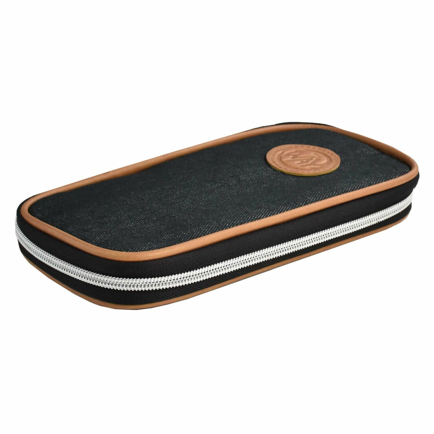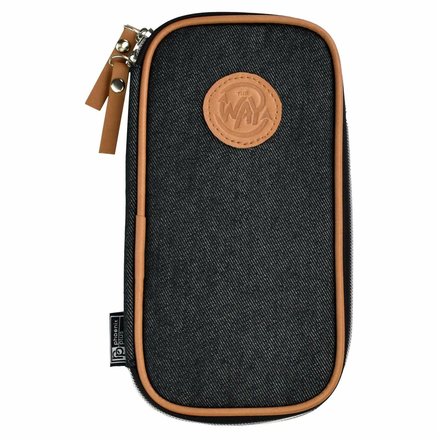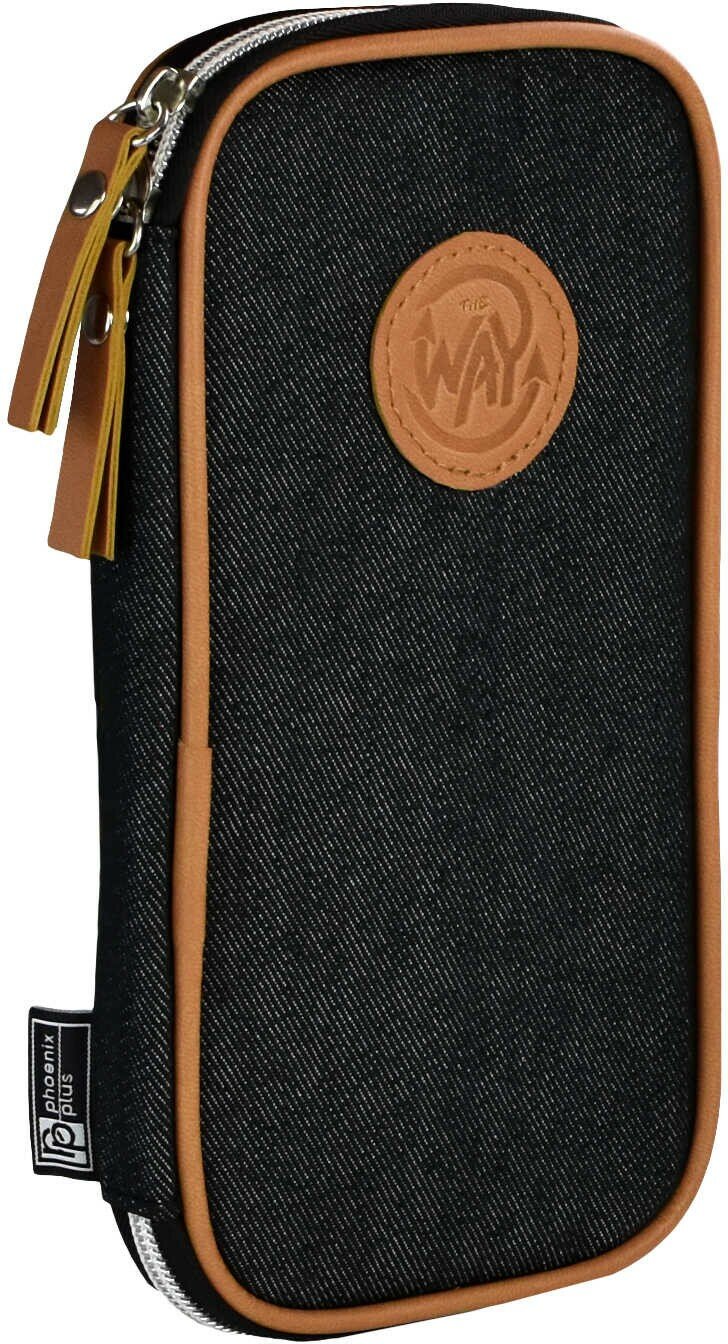 Пенал школьный Феникс+ (без наполнения, 11x20x2 см, хлопчатобумажная джинсовая ткань, молния, нашивка из искусственной кожи с блинтовым тиснением, ПЭТ-пакет).
