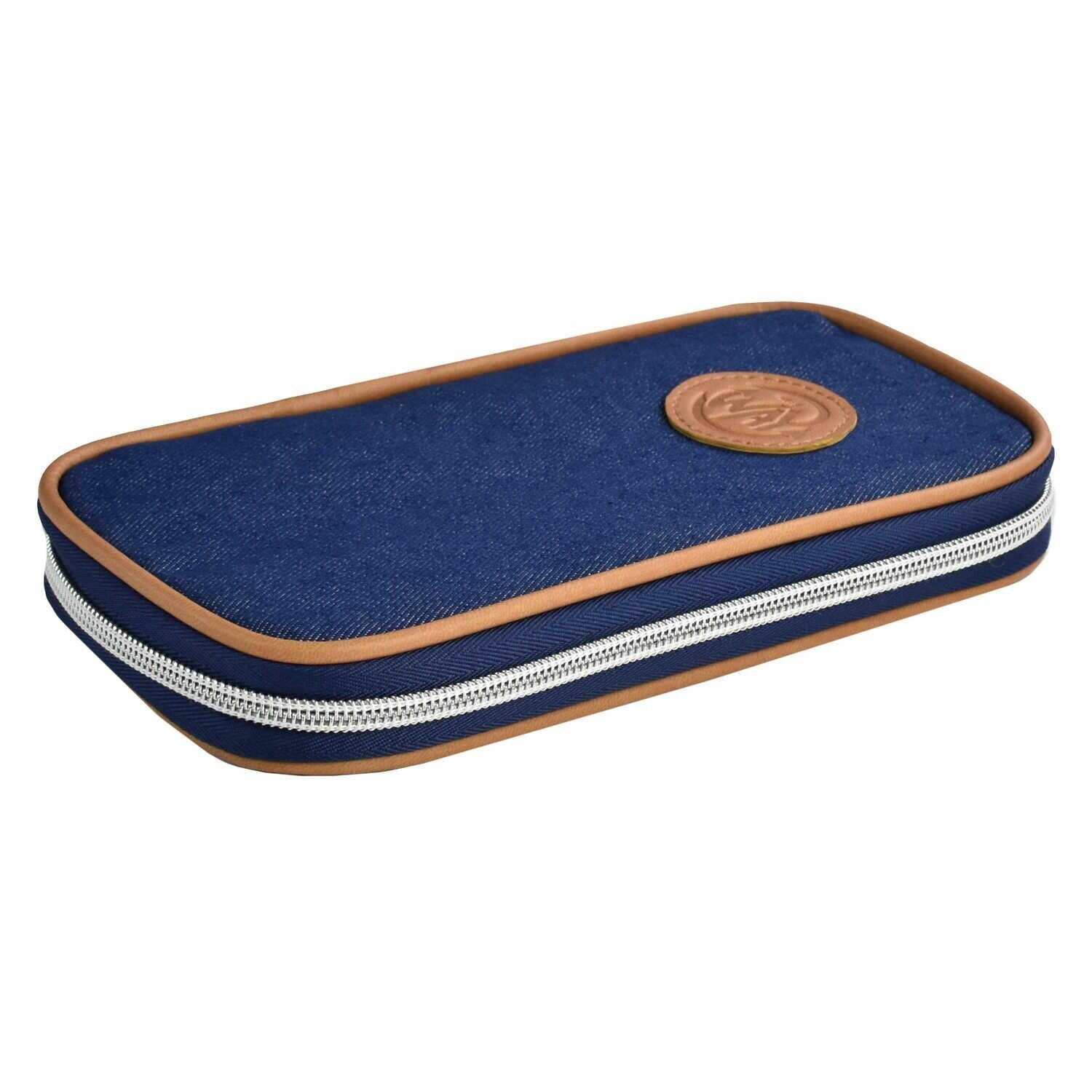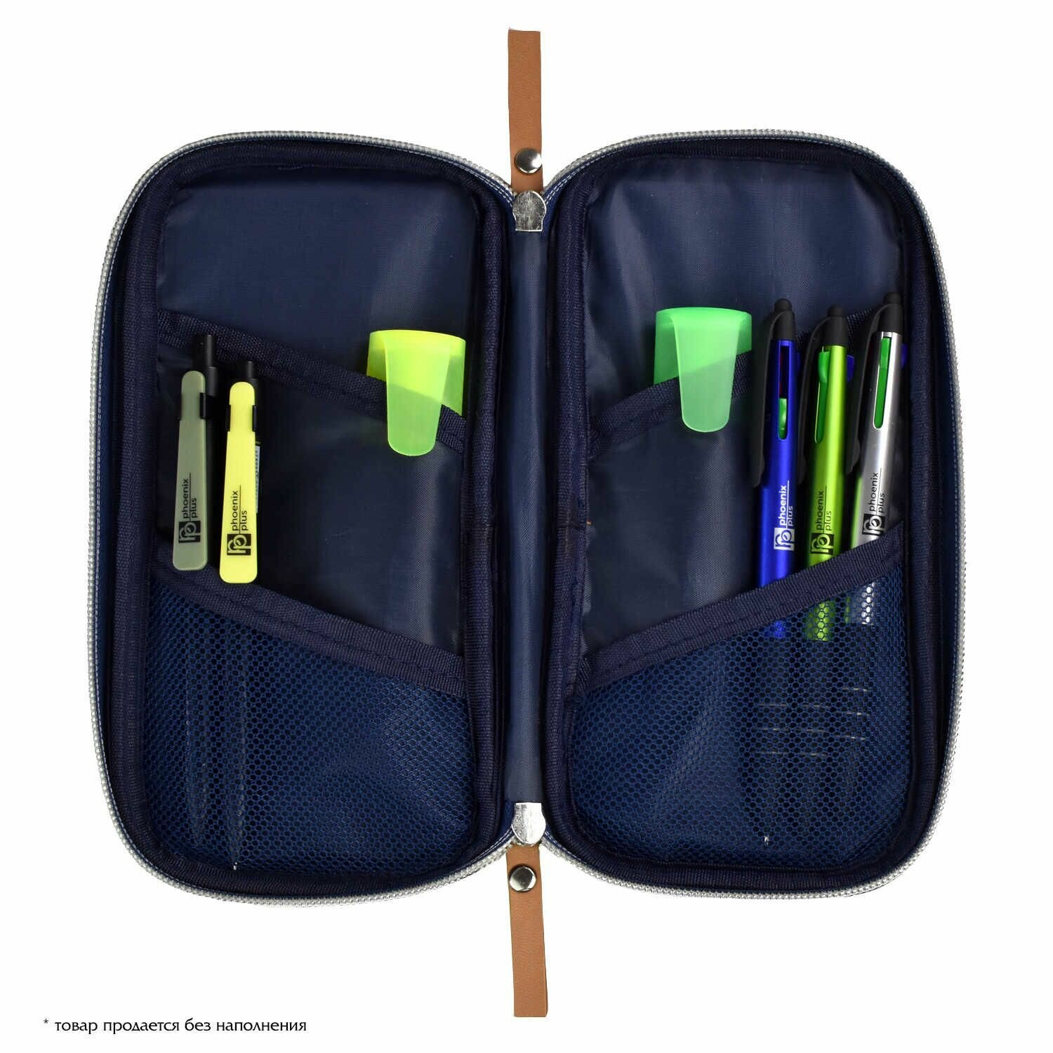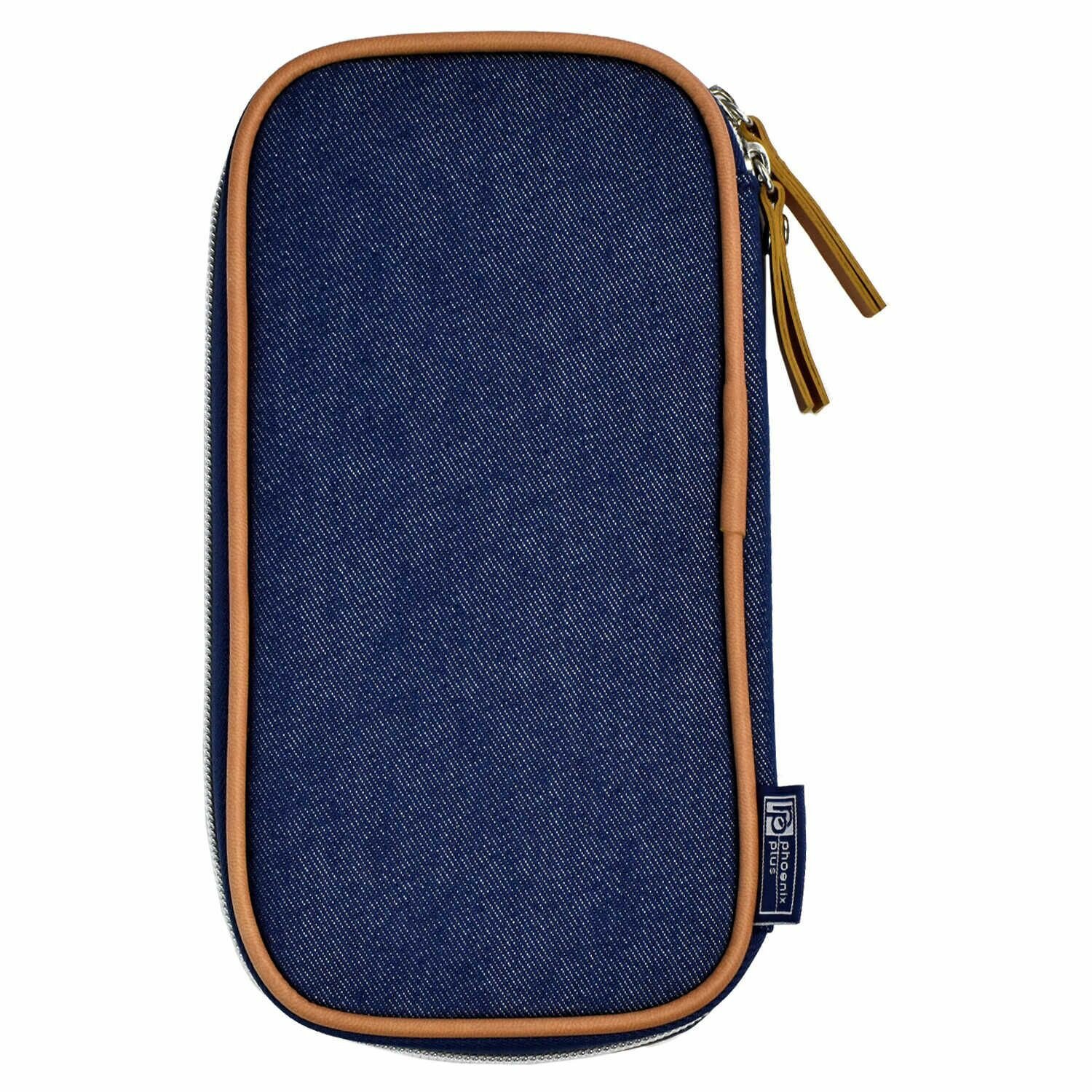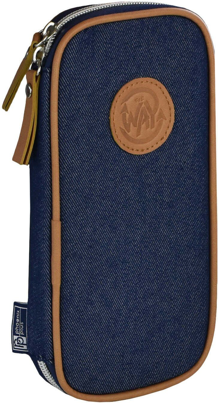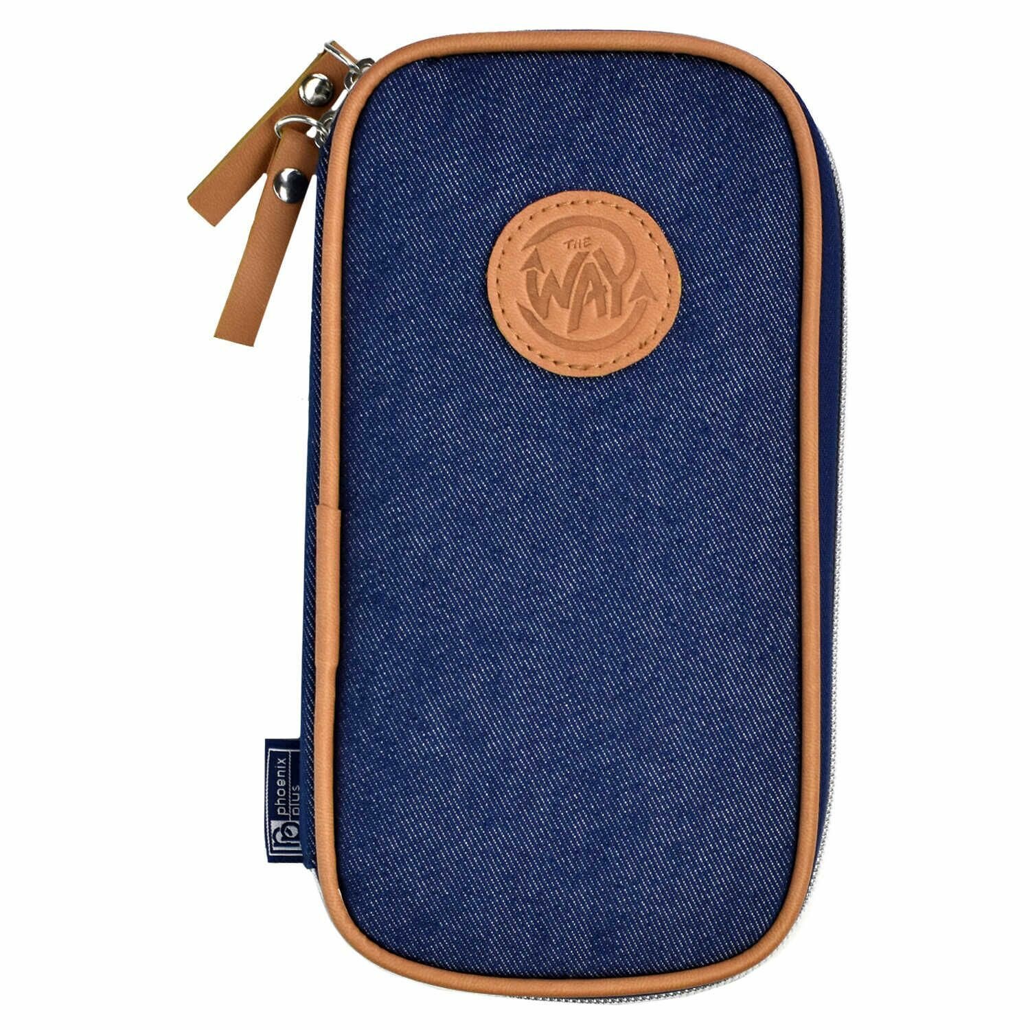 Пенал школьный Феникс+ (без наполнения, 11x20x2 см, хлопчатобумажная джинсовая ткань, молния, нашивка из искусственной кожи с блинтовым тиснением, ПЭТ-пакет).