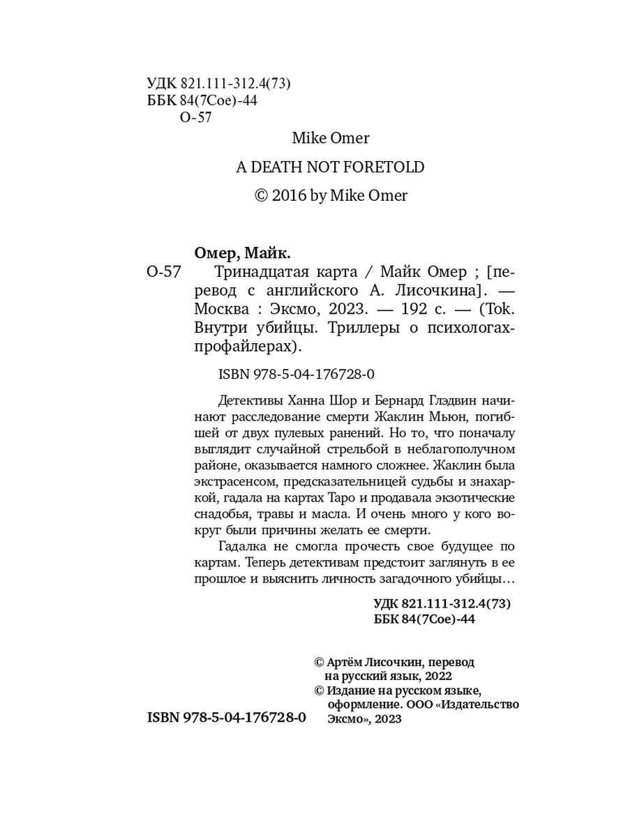 Книга: Тринадцатая карта (Майк Омер); Эксмо, Inspiria, Редакция 1, 2023