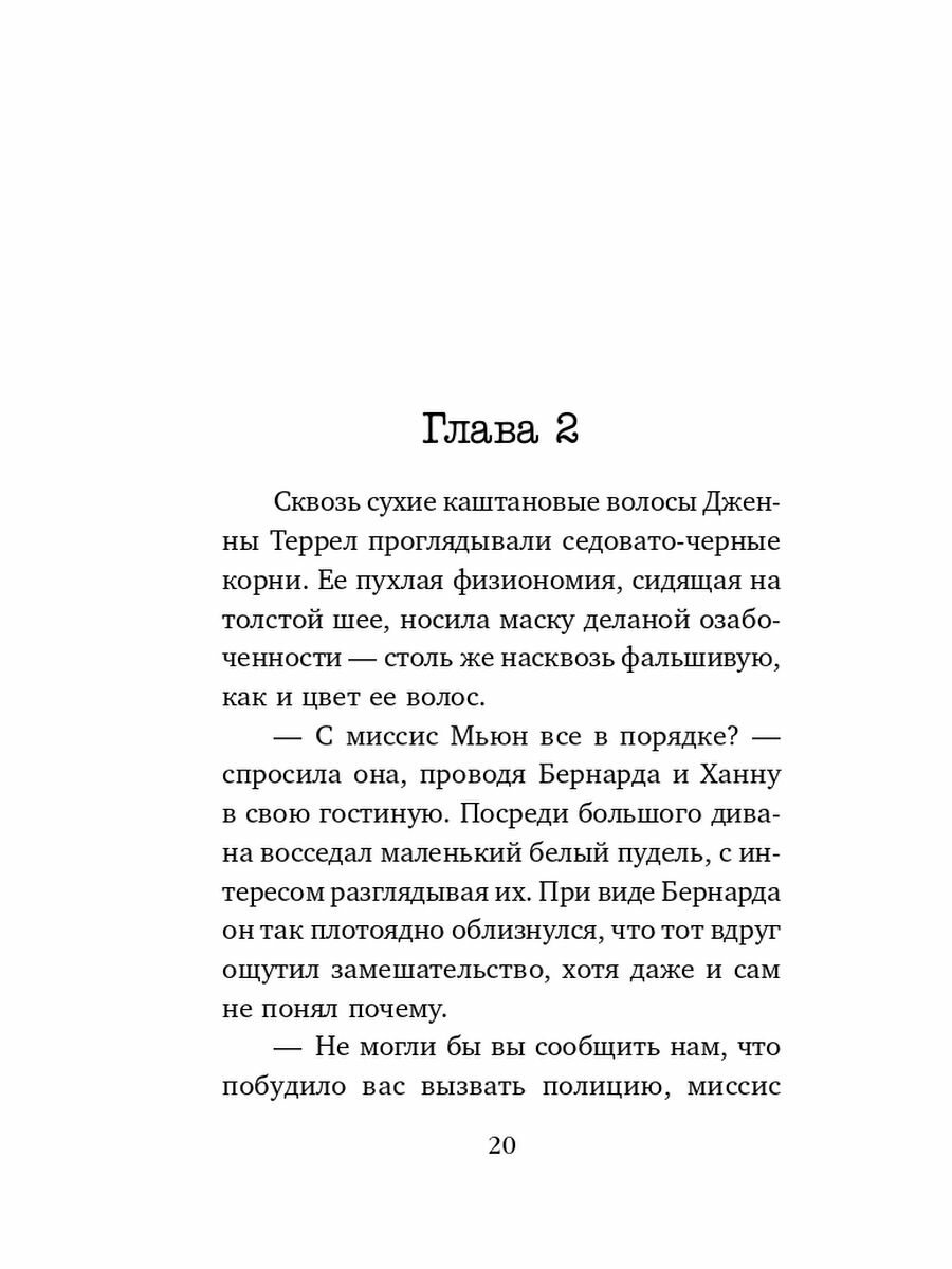 Детектив Бернард Глэдвин склоняется над покрытым кровью телом женщины, которой на вид около 60 лет. Напарница Бернарда - детектив Ханна Шор. Они работают долгие часы и узнают, что жертва, Жаклин Мьюн, была Духовным наставником и ясновидящей с более чем 30-летним стажем. Это образцовая процессуальная история расследования убийства, которая продвигается очень интенсивно, она очень интригующая и хорошо написана. Я думаю, что автор достаточно квалифицирован, чтобы стать детективом-криминалистом в реальной жизни! Он очень талантлив. Рекомендую!