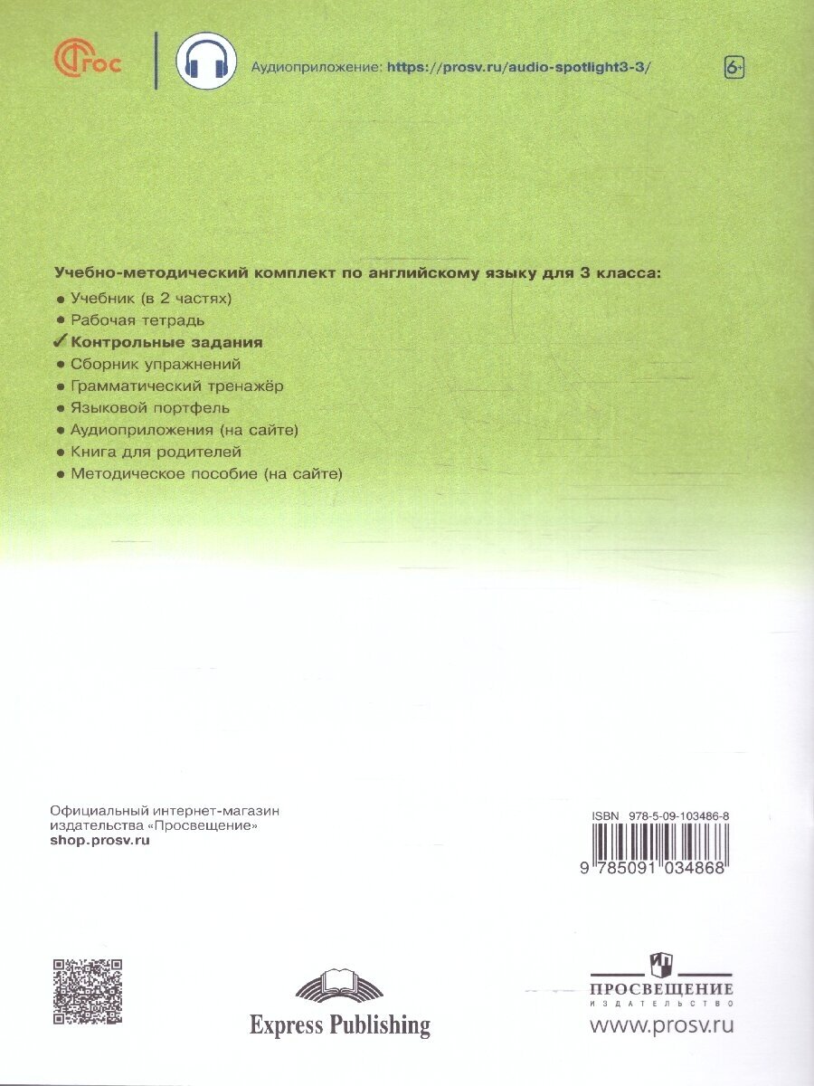 Spotlight. Английский язык. 3 класс. Контрольные задания. Учебное пособие (Быкова Надежда Ильинична; Поспелова Марина Давидовна; Эванс Вирджиния; Дули Дженни); Просвещение, 2023