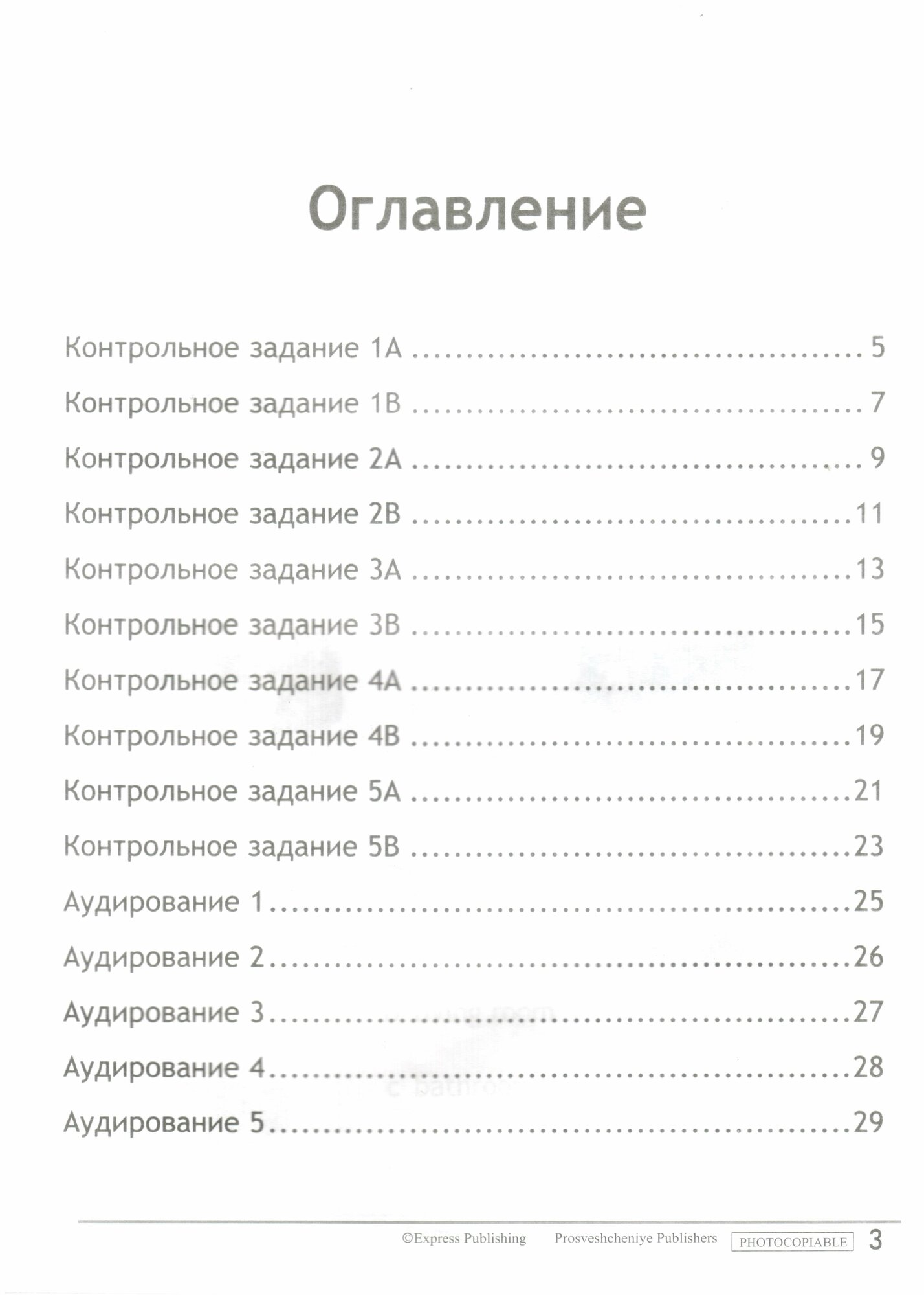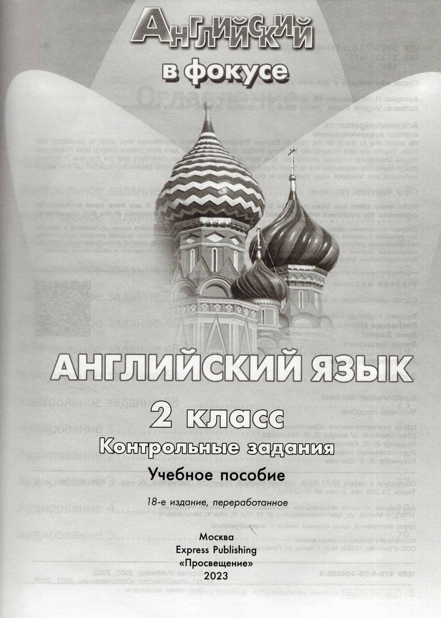 Сборник контрольных заданий является компонентом учебно-методического комплекта серии "Английский в фокусе" для учащихся 2 классов общеобразовательных организаций. Он содержит контрольные задания, которые выполняются по завершении работы над каждым модулем учебника. Все материалы сборника можно ксерокопировать. Сборник контрольных заданий в значительной мере обеспечивает процесс контроля на регулярной и объективной основе.