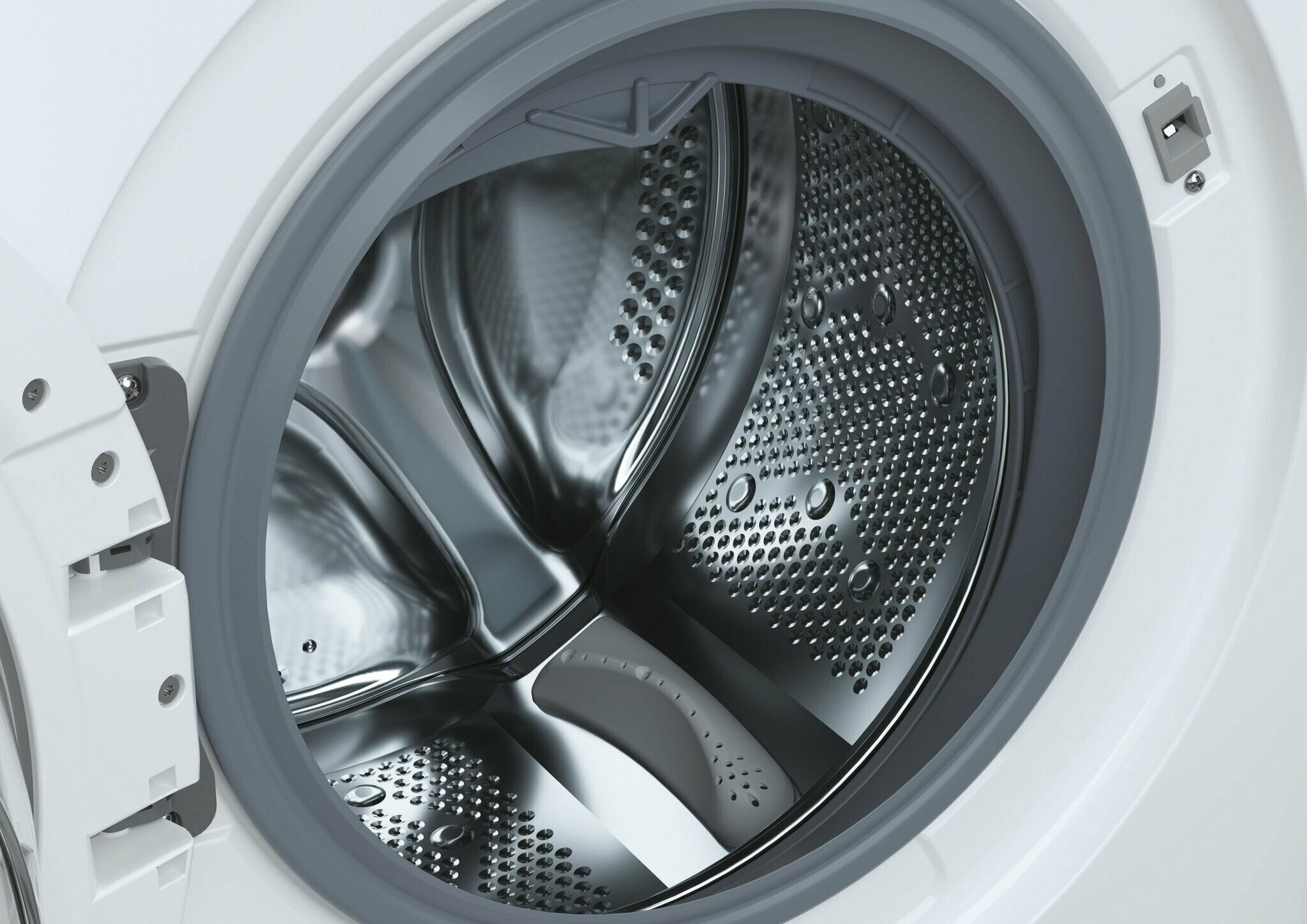 Бесшумная, загрузка 8 кг, много режимов, интересный дизайн, удобно расположенный барабан