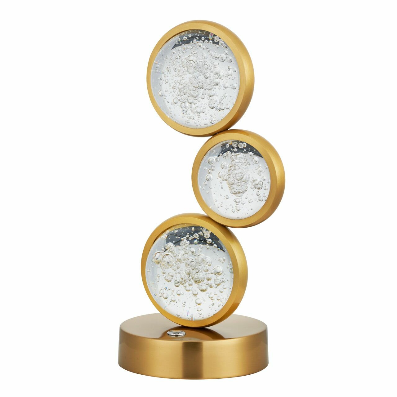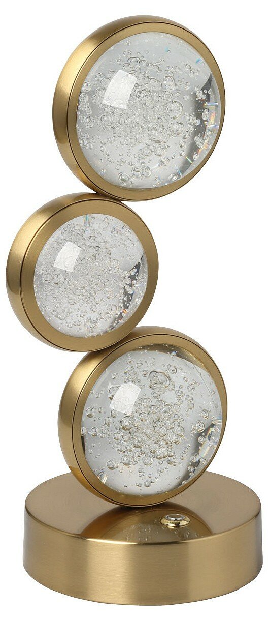 Полная семья решает задачи общего и зонального освещения. Основание светильника выполнено из сплава алюминия с цинком, обработано по технологии брашинга и гальванизировано в цвет медовой бронзы. Светодиодный источник света закрыт сферой из стекла с включениями пузырьков.