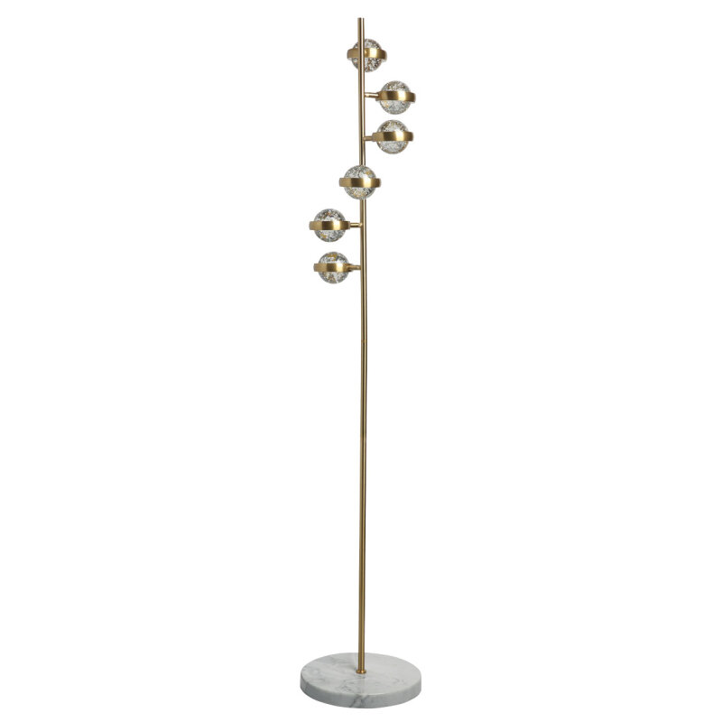 Полная семья решает задачи общего и зонального освещения. Основание светильника выполнено из сплава алюминия с цинком, обработано по технологии брашинга и гальванизировано в цвет медовой бронзы. Светодиодный источник света закрыт сферой из стекла с включениями пузырьков.