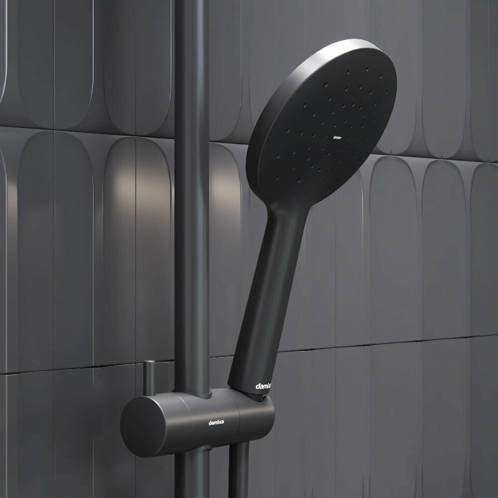 Душевая лейка Damixa Jupiter 977020300. Стильный и лаконичный дизайн коллекции Jupiter прекрасно подойдет как для классической, так и для современной ванной комнаты. Благодаря большому количеству форсунок с микроотверстиями, которые распределяют поток мягкими равномерными струями, вы сможете наслаждаться расслабляющим эффектом настоящего домашнего SPA. Поддерживать чистоту стало еще проще с функцией очистки резиновых форсунок Rub&Clean. Вам больше не нужны специальные инструменты и средства для удаления известкового налета просто протрите резиновую поверхность мягкой тканью. Инновационное PVD-покрытие гарантирует чрезвычайную прочность изделия. Матово-черная поверхность не выцветает с годами и устойчива к механическим повреждениям, загрязнениям и отпечаткам пальцев.