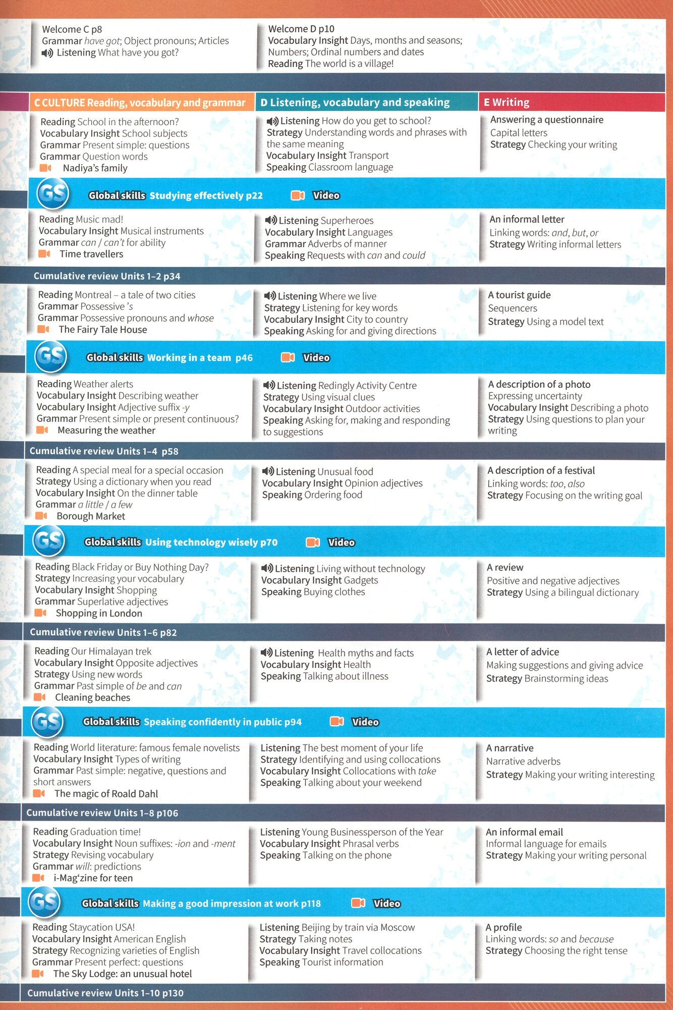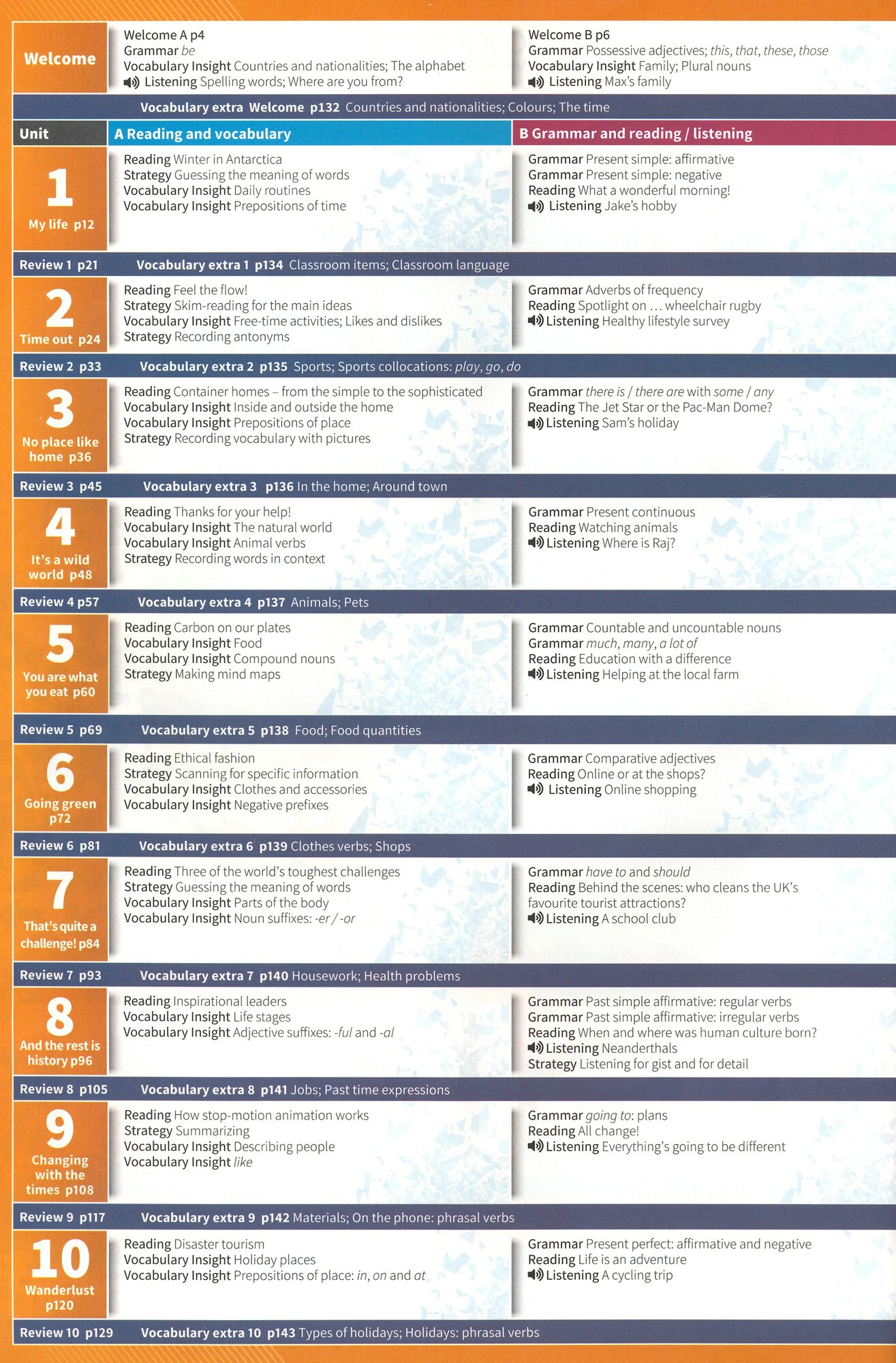 Empower, Develop, Inspire Печатный учебник (Student's Book) с цифровым пакетом содержит доступ на 2 года к онлайн-практике и студенческим ресурсам. Книга для учащихся используется на занятиях, также ученики получают доступ к онлайн-практике для продолжения обучения вне класса. Насыщенный контент второго издания Insight поднимает актуальные современные темы, что позволяет поддерживать мотивацию и вовлеченность учеников. • подход Assessment for Learning в Insight 2nd edition дает возможность получить оценку и обратную связь для понимания и ускорения прогресса в обучении • поддержка профессионального развития Professional Development поможет вам приступить к работе • перед началом работы с УМК посмотрите видеоуроки, получите доступ к основным экспертным советам и краткому руководству по ключевым вопросам, а также пройдите короткие модули профессионального развития для ознакомления с ключевыми методологиями курса • доступ к цифровым материалам и ресурсам курса осуществляется через Oxford English Hub - платформу для обучения на сайте www. oxfordenglishhub. com • акцент на Global Skills развивает навыки, необходимые учащимся на протяжении всей жизни для достижения успеха • тексты УМК современны и насыщенны, вдохновляют на размышления • в рабочей тетради добавлен новый раздел Assess Your Progress • обновлен и улучшен раздел по навыку письма • добавлены дополнительные страницы по лексике Vocabulary Extra • разделы по грамматике и языковым навыкам готовят учащихся к использованию английского языка в реальном мире • онлайн-практика предлагает дополнительные интерактивные занятия по грамматике, лексике и работе над языковыми навыками