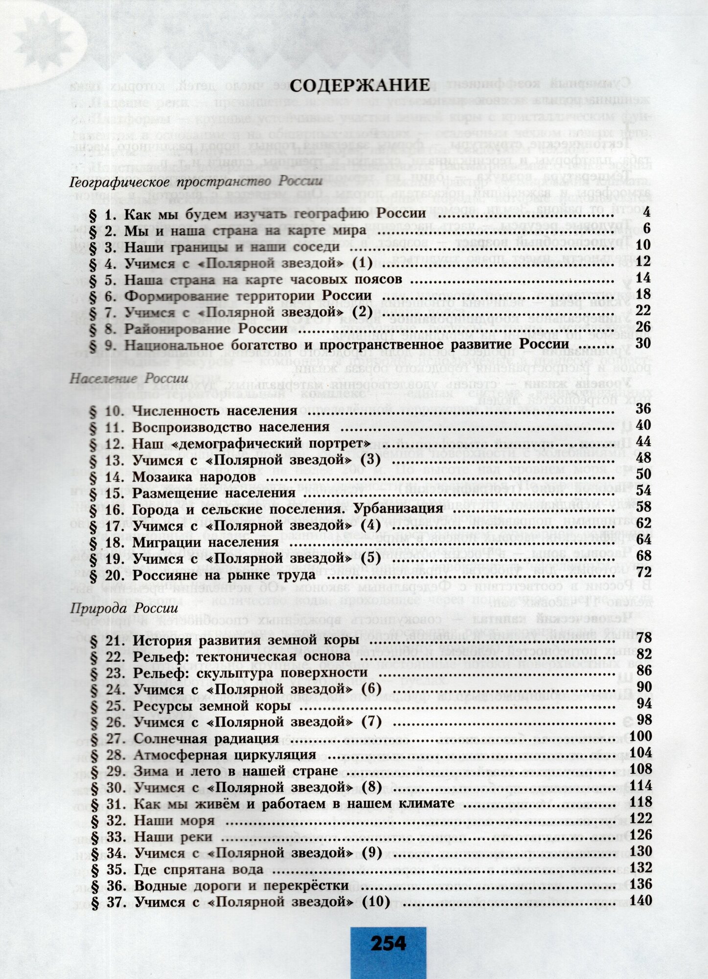 Содержание учебника нацелено на формирование знаний о России: её географическом положении, населении и природе. Большое внимание уделяется изучению природнохозяйственных зон нашей страны и своеобразия её природных регионов.