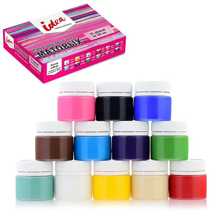 Набор матовых акриловых красок 12 цветов по 20 мл.