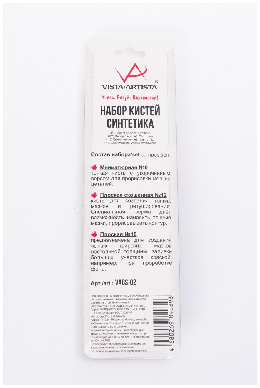 Набор кистей синтетика 3 шт VISTA-ARTISTA