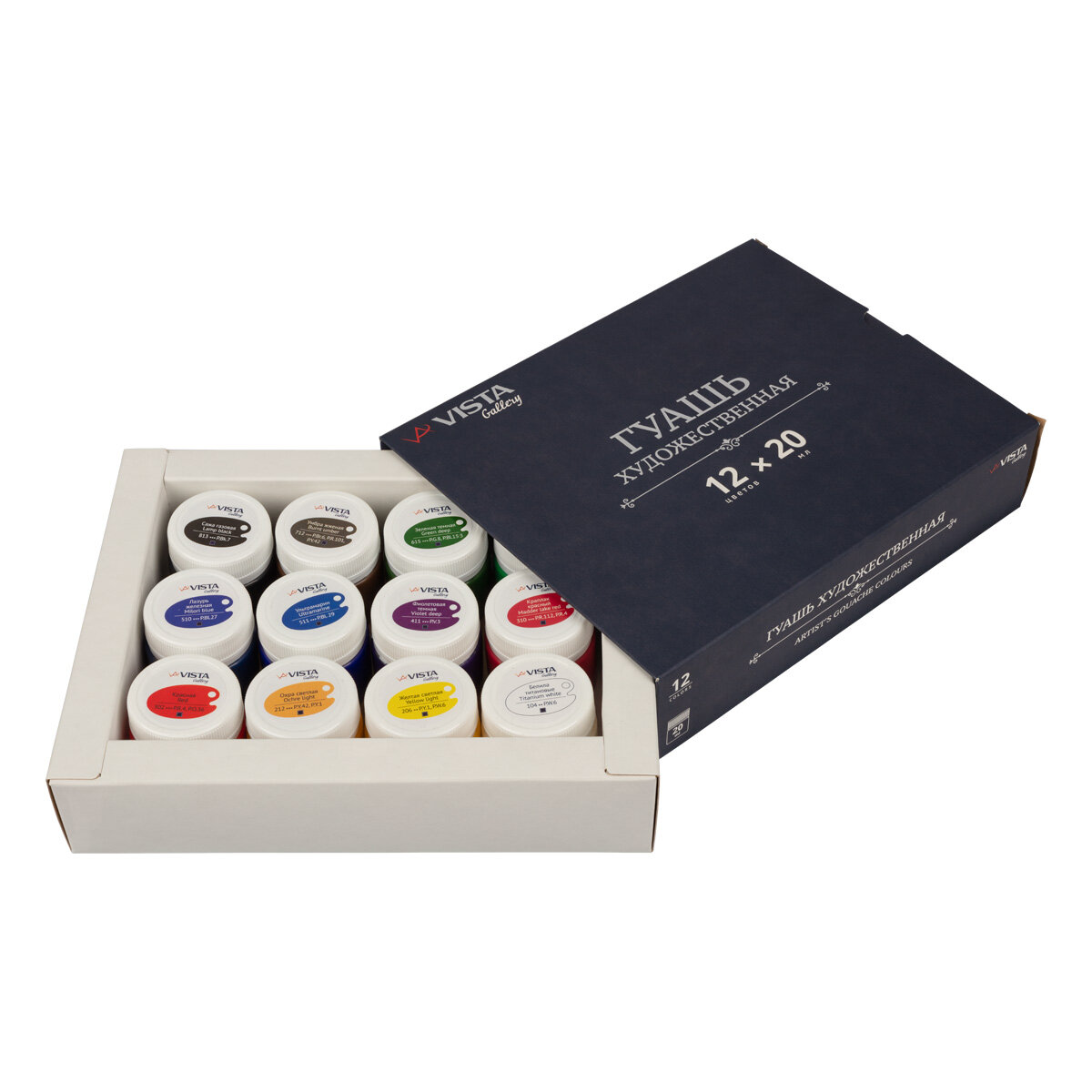 Гуашь Gallery 20 мл 12 цветов VISTA-ARTISTA
