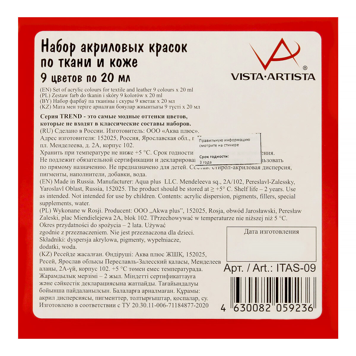 Краски по ткани и коже 9 цветов VISTA-ARTISTA