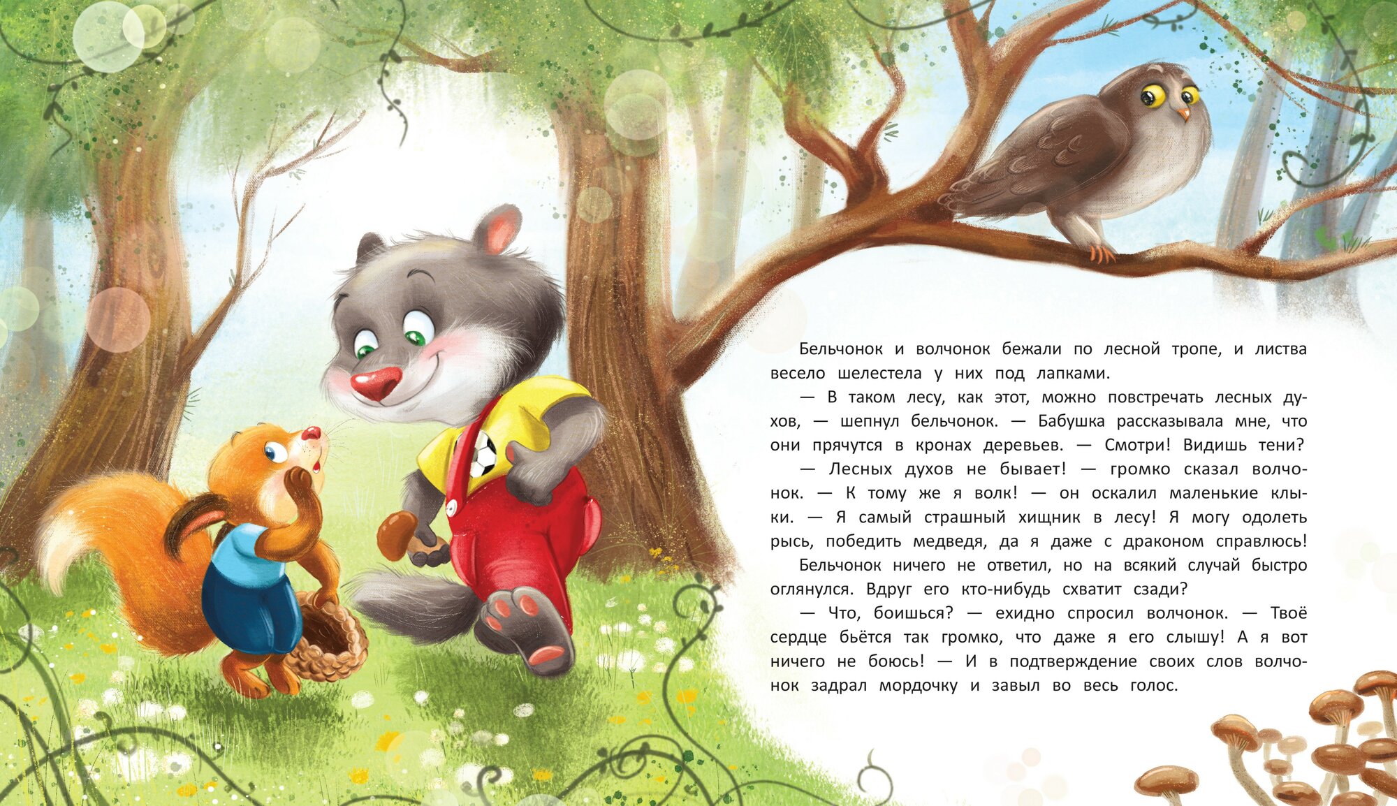 Волчонок думал, что он очень храбрый и никого не боится. Он даже похвастался этим перед своим другом - бельчонком. Однако, услышав в кустах шорох, волчонок перепугался и, бросив друга, помчался домой. Он рассказал маме о том, что приключилось в лесу, а мама помогла ему понять, что всё ещё можно исправить.