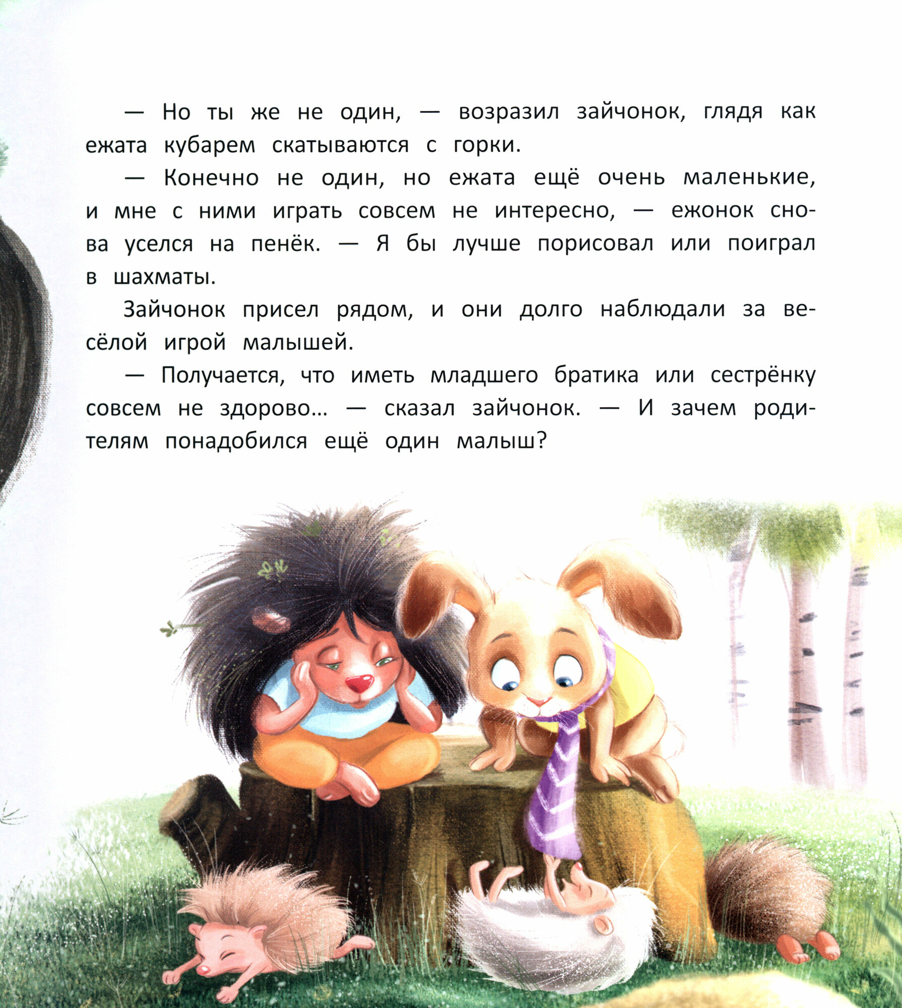 Вот-вот в большой заячьей семье должен появиться малыш. Зайчонок очень взволнован этой новостью и решает узнать у друзей, каково это - иметь маленького братика или сестрёнку. Лисёнок, бельчонок и ежонок дают ему свои ответы, однако, взглянув на сестрёнку, зайчонок понимает - ответ на этот вопрос нужно было искать в своём сердце.