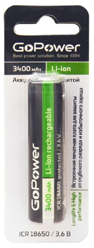 Аккумулятор GoPower 00-00015350 Li-ion (Pan. NCRB) BL1 3.6V 3400mAh с защитой выс.конт. (1/155) 18650