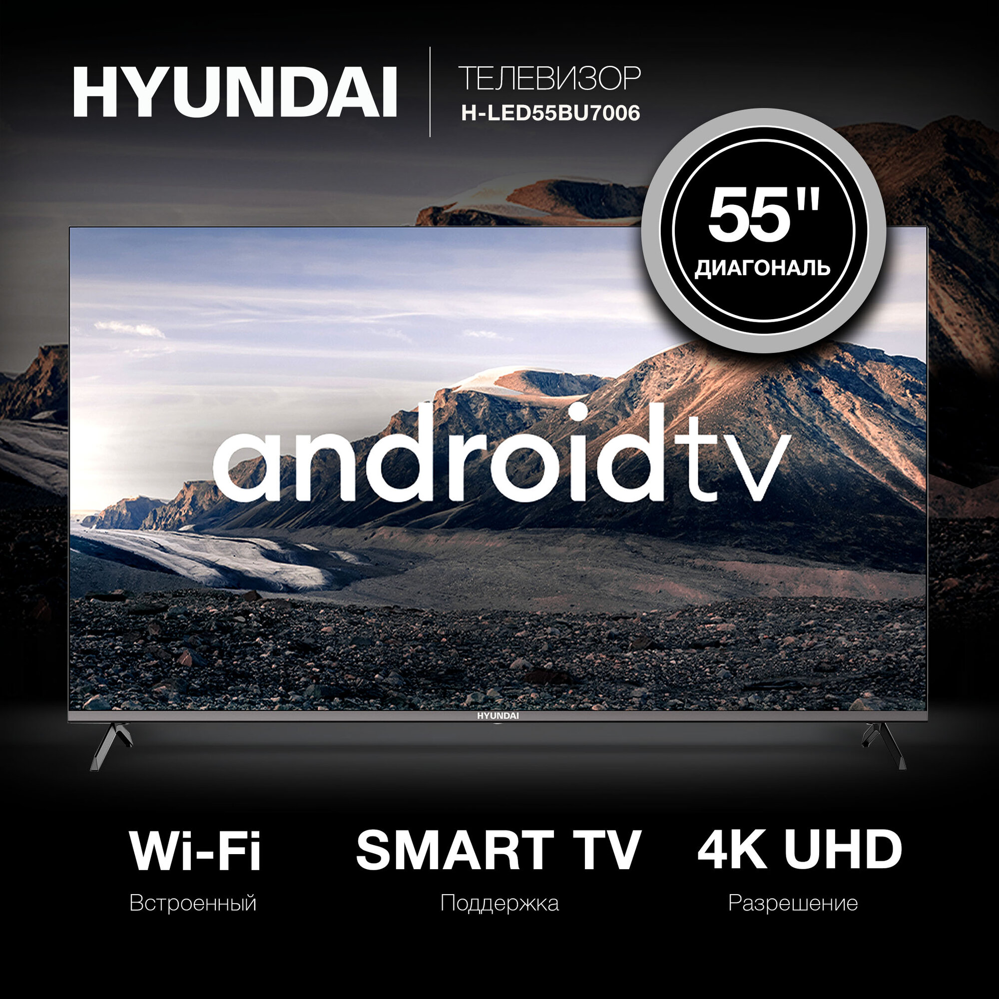 Телевизор Hyundai Android TV H-LED55BU7006 55" LED 4K Ultra HD Android TV черный