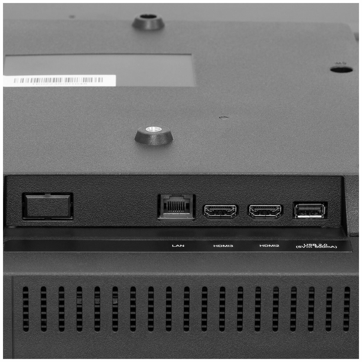 Операционная система Android TV 11, на базе которой работает прибор, поддерживает функционал SMART TV и позволяет воспроизводить потоковое видео со стриминговых площадок. Для этого он оснащён модулем Wi-Fi и разъёмом Ethernet.