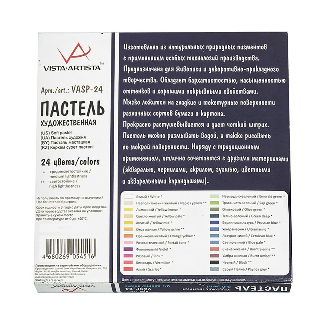 На сегодняшний день товар «Пастель художественная Studio 24 цвета VISTA-ARTISTA» можно купить с кешбеком в 1 магазине: Яндекс.Маркет