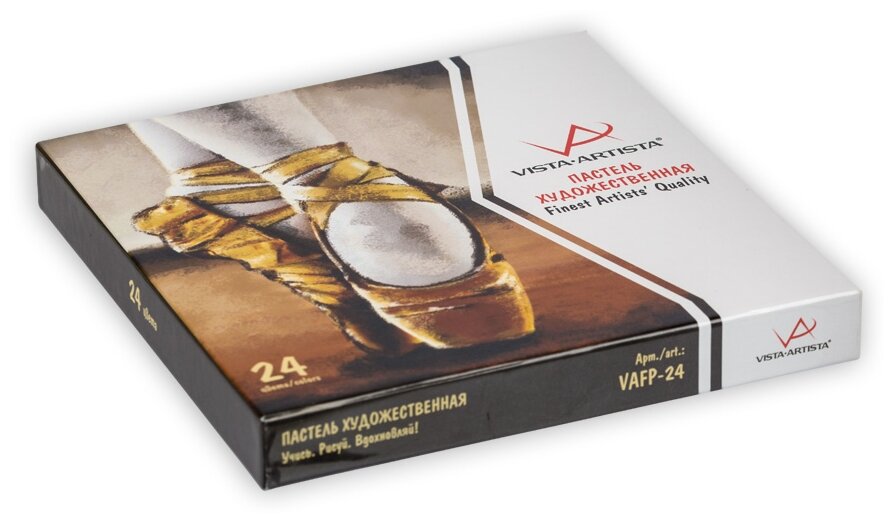 Художественная пастель изготовлена из качественных пигментов по современным технологиям с применением карбоната кальция, который придает особую бархатистость цвета. Пастель отлично подходит для графических работ, как в технике пастели, так и в смешанных техниках с применением гуаши, акварели, темперы, угля, сангины и цветных карандашей. Vista-Artista Fine отличается насыщенными цветами, мягкостью нанесения, высокой светостойкостью, цвет не теряется при растушевке.