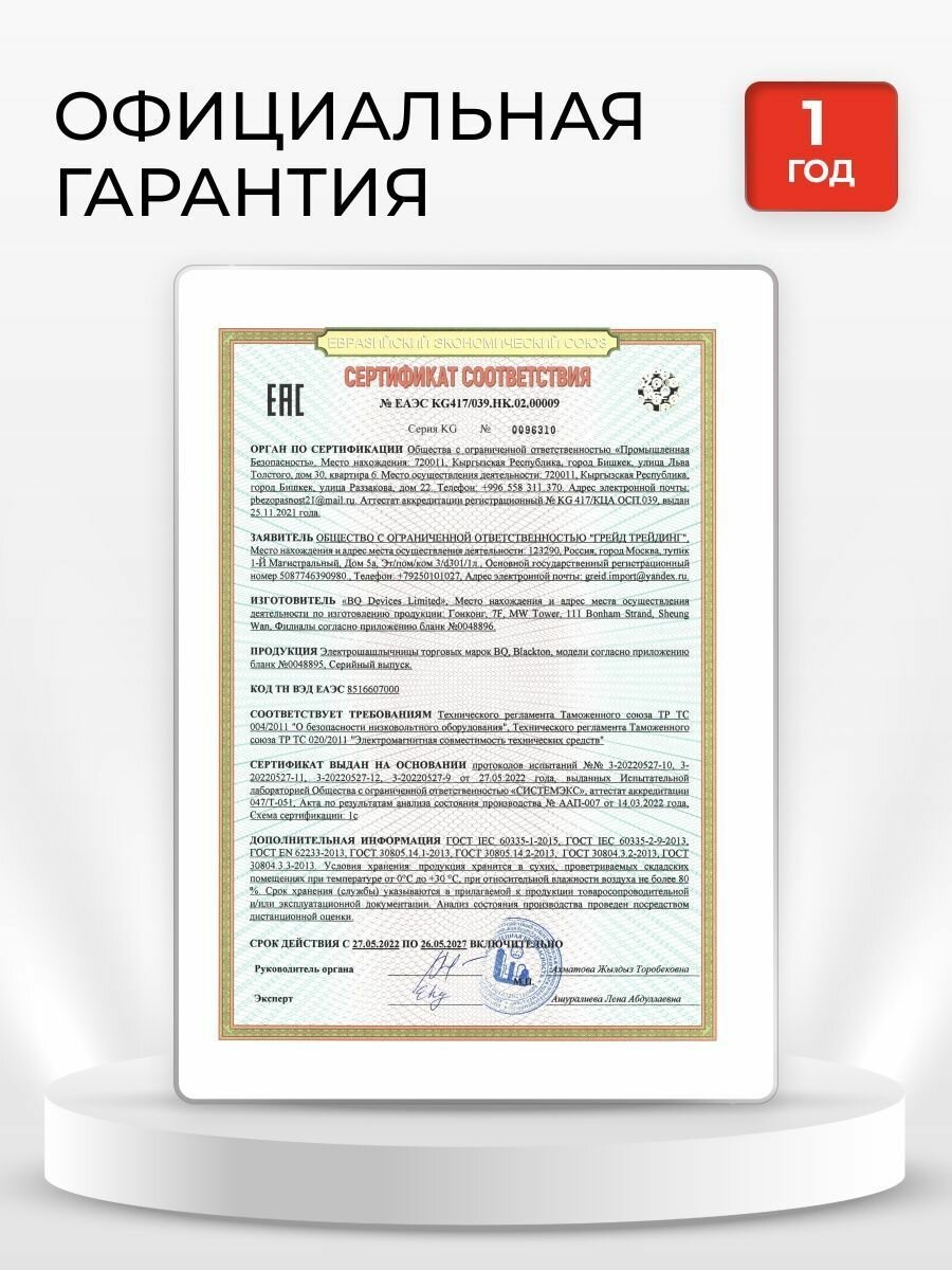 | Гарантия | 1 год |