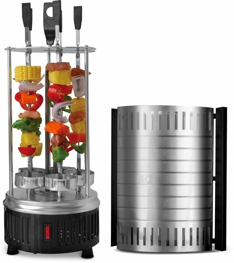 Чтобы полакомиться шашлыком, не обязательно ждать лета и поездки на природу! Электрическая шашлычница от компании BQ приготовит для вас нежное и ароматное блюдо в домашних условиях. Особая конструкция шашлычницы обеспечивает равномерную прожарку каждого куска мяса. Шашлычница электрическая проста в использовании, а также не требует специального ухода. В комплект входят 5 шампуров из нержавеющей стали, которые вращаются со скоростью 2,7 об/мин., за счет чего продукты равномерно прожариваются со всех сторон. Мощность в 1000 Вт позволяет достаточно быстро разогреть нагревательный элемент из керамики на шашлычнице для кухни до максимальных 240 градусов.