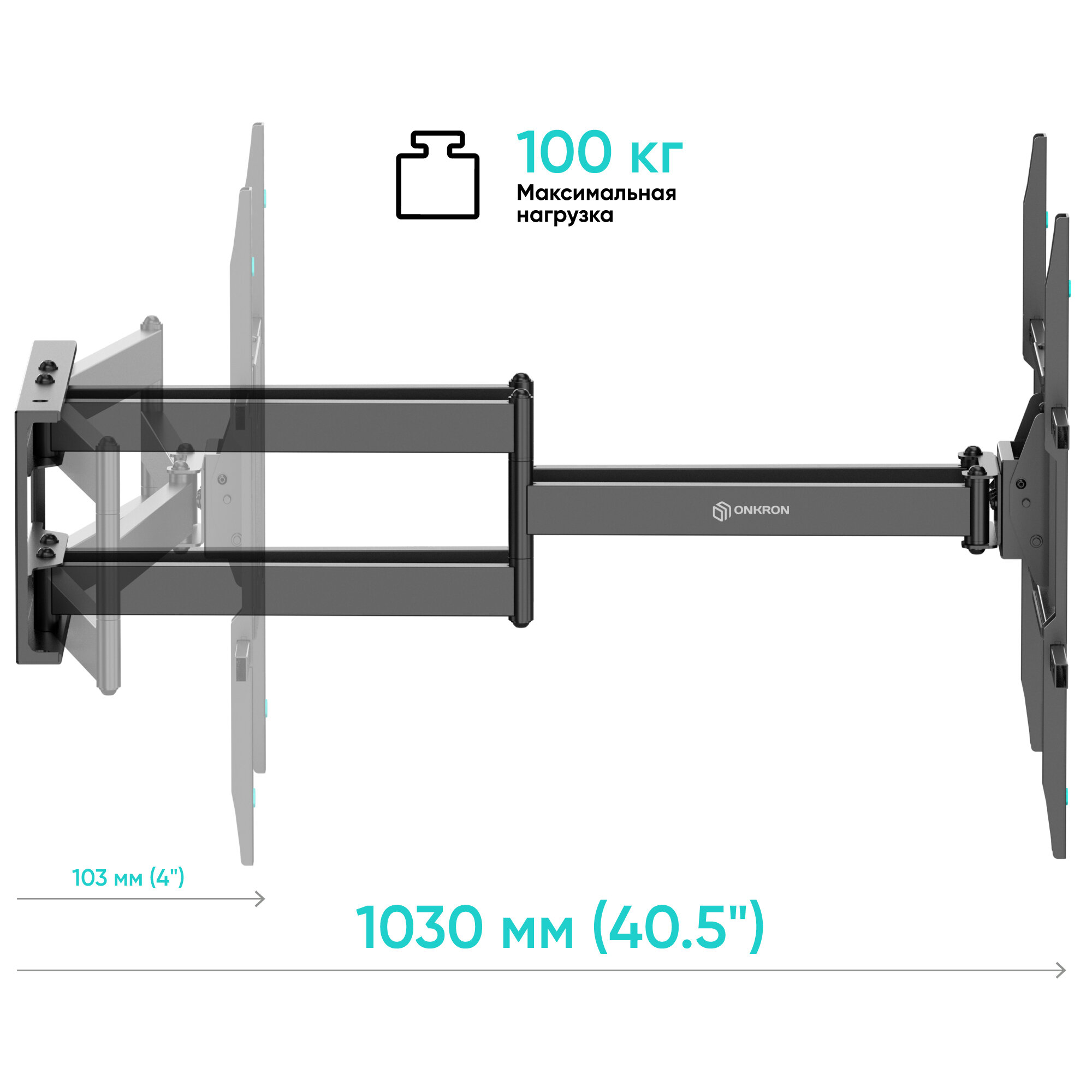 Кронштейн для телевизора Onkron M8L черный, рекомендуемая диагональ 42"-110", максимальная нагрузка 100кг, настенный, поворотно-выдвижной и наклонный, угол наклона -5/+15, угол поворота 90