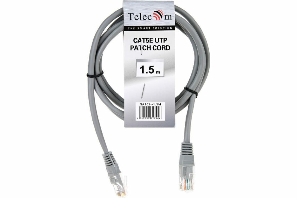 Патчкорд литой "Telecom" UTP кат.5е 15м серый VCOM NA102--1.5M