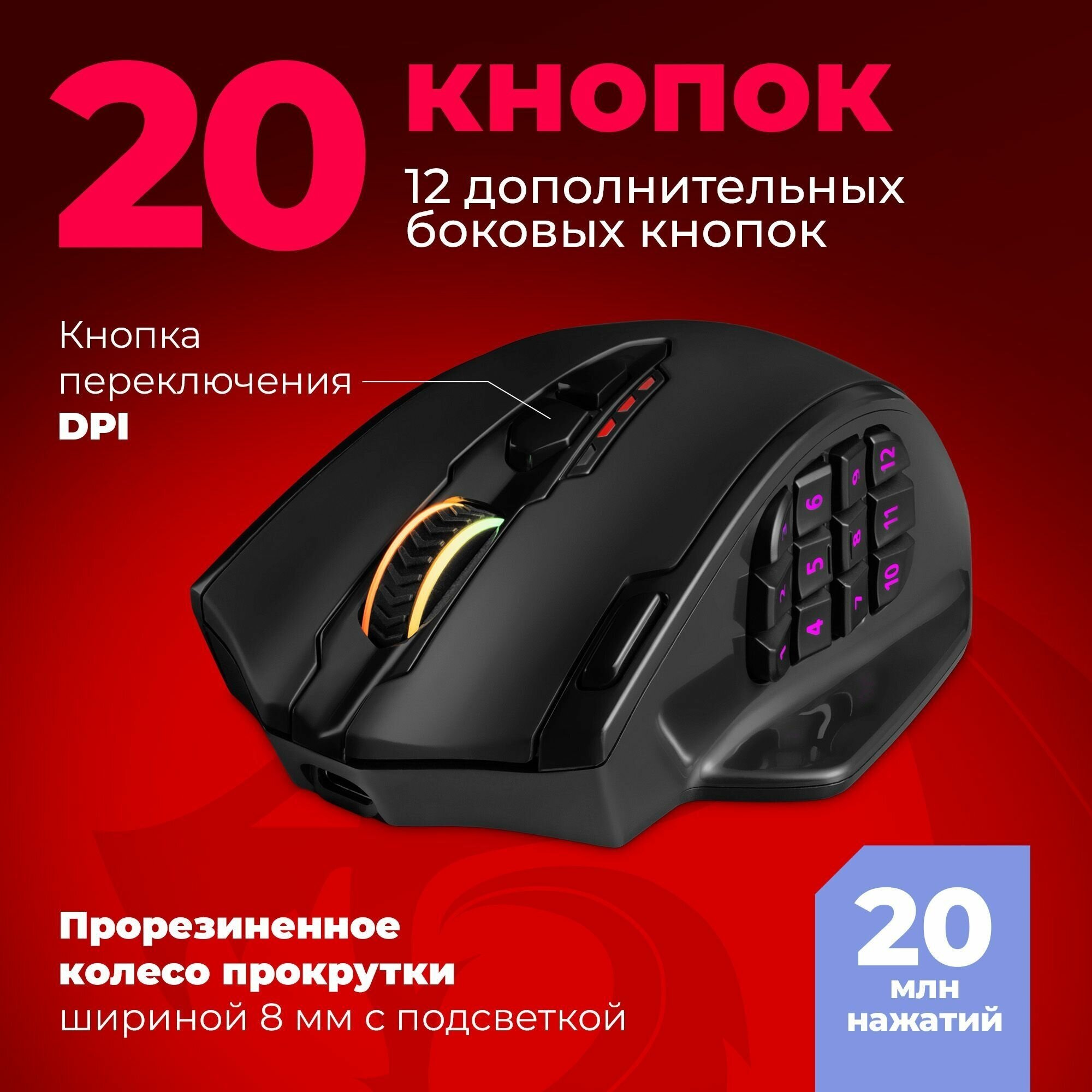 Беспроводная игровая мышь Impact Elite Оптика RGB 16000 DPI б.п. Redragon Defender (77855)