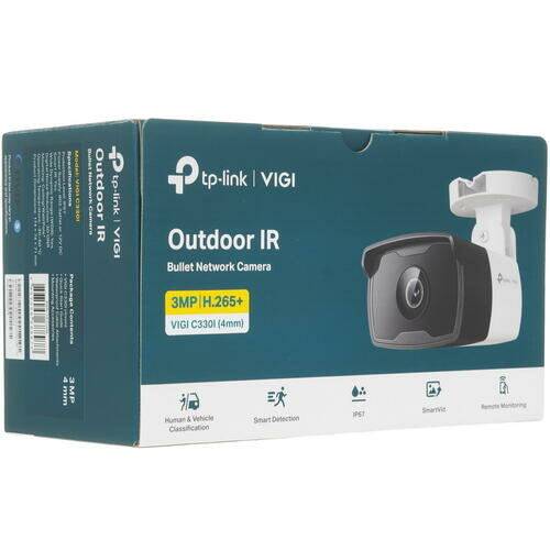 IP-камера TP-Link VIGI C330I выполнена в корпусе цилиндрической формы. Зашита от проникновения пыли и воды по стандарту IP67 предусматривает установку на улице. Конструкция выдерживает влажность до 95% и температуру от -30° до +60° C. Сенсор CMOS 3 Мп и инфракрасная подсветка позволяют получать четкое видео в разных условиях внешней освещенности. Функция «Баланс белого» компенсирует искажения. Камера TP-Link VIGI C330I подключается по проводному интерфейсу RJ45. Умные алгоритмы обеспечивают высокую точность распознавания людей и транспортных средств. Интеллектуальная система отслеживает движущиеся объекты, пересечение линий, проникновение в зону, оставленный багаж. Подача питания на камеру может выполняться двумя способами: посредством PoE и от розетки 12 В.