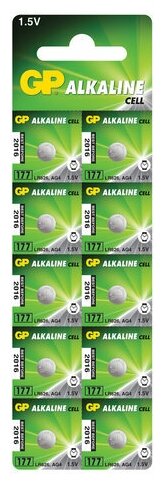 Алкалиновые пуговичные батарейки GP 177A - 10 шт. каждая в своем отрывном блистере GP 4891199026690