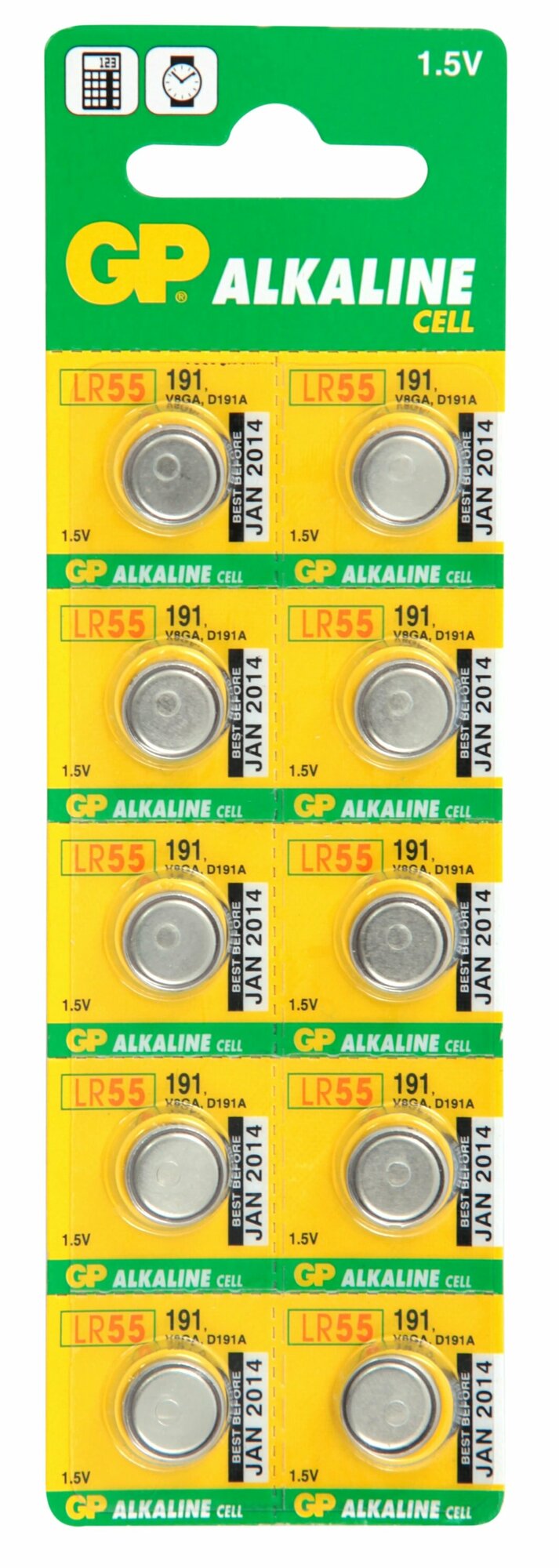 Алкалиновые пуговичные батарейки GP 191A - 10 шт. каждая в своем отрывном блистере GP 4891199015526