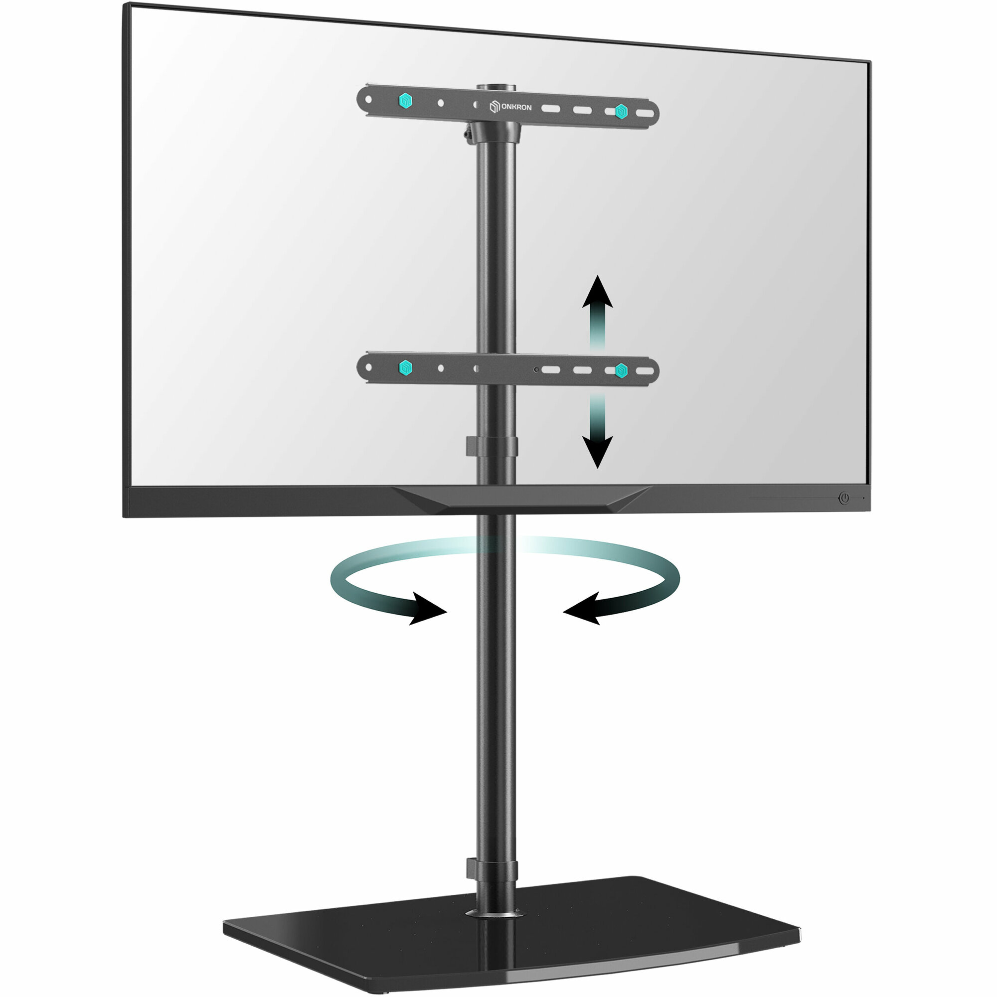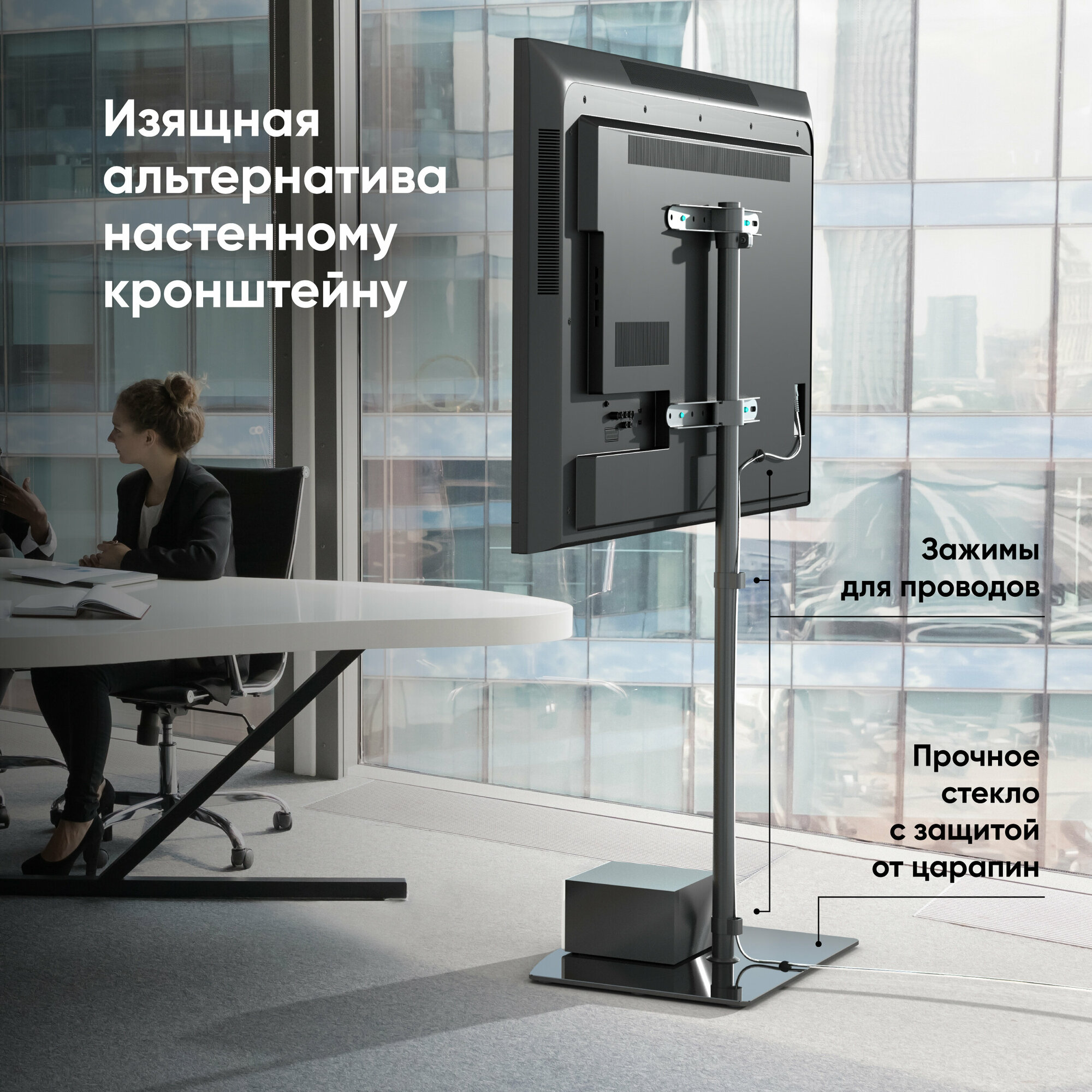 ONKRON TS5065 — напольная интерьерная стойка для экранов среднего размера весом до 41 кг. Монтажный кронштейн совместим с VESA (от 100 х 100 мм до 400 х 400 мм), с большинством плоских и изогнутых экранов с диагональю от 30 до 60 дюймов. Дизайнерскую стойку TS5065 оценят как консерваторы, которые годами не нарушают сложившуюся расстановку в доме, так и молодая аудитория, предпочитающая постоянно менять локацию, но при этом всегда иметь перед собой экран. Стойка под телевизор размещается на любой ровной поверхности: в офисе, в детской или гостиной. Несомненные плюсы ONKRON TS5065: современный лаконичный дизайн, качество конструкции и неприхотливость в эксплуатации. Конструктивные особенности позволяют быстро и без усилий поднимать и опускать телевизор на необходимую высоту, а также вращать экран. Стойка TS5065 предусматривает поворот вокруг оси (-54°;+54°) установленного на нее ТВ. АЛЬТЕРНАТИВА НАСТЕННОМУ КРОНШТЕЙНУ И МАССИВНЫМ ТУМБАМ Подставка для телевизора не требует сверления стены, при этом обеспечивает небольшое расстояние от неё, что делает ее прекрасной альтернативой настенному кронштейну или тумбе для ТВ. Для установки стойки не требуется специальных инструментов и навыка. Все необходимое уже есть в комплекте. Вам необходимо 10 минут свободного времени и следование пошаговой инструкции! БЕЗОПАСНОСТЬ Подставка под телевизор выполнена из холоднокатаной углеродистой стали (SPCC) и позволяет выдержать вес экрана до 41 кг. Закаленное стекло (неопасно при случайном разбитии) толщиной 10 мм увеличивает устойчивость, смещая центр тяжести всей конструкции к полу. Встроенный ограничитель поворота не позволит развернуть ТВ назад и опрокинуть его. ЭСТЕТИКА И ЭРГОНОМИЧНОСТЬ Напольная подставка под телевизор имеет изящный вид, благодаря минималистичному исполнению: узкая колонна 35 мм и пара направляющих. Высота стойки легко регулируется, что поможет без труда выбрать комфортное для зрителя положение. Держатели кабеля на колонне, а также клипсы помогут организовать провода. БЕРЕЖНАЯ ЭКСПЛУАТАЦИЯ Фирменные полимерные накладки снижают риск механического повреждения задней поверхности телевизора о стальной кронштейн. Комплект дополнен 7 устойчивыми мягкими ножками, которые защитят напольное покрытие от повреждений и царапин при передвижении подставки. Стекло не царапается при уборке роботом-пылесосом.