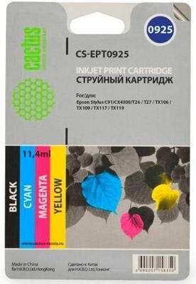 Картридж Cactus T0925 черный/голубой/пурпурный/желтый, для EPSON Stylus C91/CX4300/T26/T27/TX106/TX109/TX117/TX119