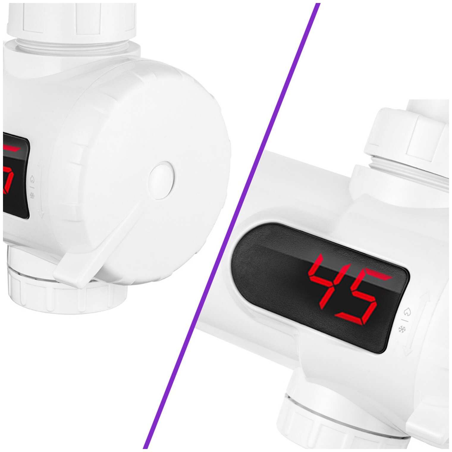 Проточный нагреватель КТ-4033 - это смеситель, предназначенный для быстрого нагрева холодной проточной воды. Он отличается простотой и лёгкостью монтажа: достаточно просто закрепить его на изливе смесителя с помощью муфт, которые идут в комплекте. В корпусе установлен ТЭН, который быстро нагревает воду, проходящую через устройство. С помощью КТ-4030 вы можете нагревать воду до 30-60 °С и при этом не ждать, когда бойлер с водой нагреется. Время использования горячей водой ничем не ограничивается. Отличительной особенностью проточных водонагревателей является постоянство t°С воды. t°С нагрева регулируется напором воды: чем меньше напор, тем выше t°С. Установив комфортную t°С, можно не беспокоиться, что из крана пойдёт кипяток или холодная вода. На корпусе устройства расположен дисплей, который отображает текущую температуру горячей воды. С помощью регулятора переключается подача холодной (без прохождения через ТЭН) и горячей воды и регулируется напор. Прибор крепится на изливе смесителя с помощью муфт, которые идут в комплекте (с внешней резьбой 23,8 мм, 22 мм, 20 мм, универсальная для смесителя с диаметром излива от 13 до 25 мм). Также комплектацией предусмотрены прокладки, ФУМ-лента. Аэратор насыщает воду кислородом, что способствует выветриванию хлора, также это помогает снизить уровень шума потока воды за счёт смешивания его с воздухом и экономит расход воды. Сбоку на корпусе водонагревателя находится отверстие для слива воды с крышкой, которое необходимо, чтобы слить остатки воды из устройства перед хранением.