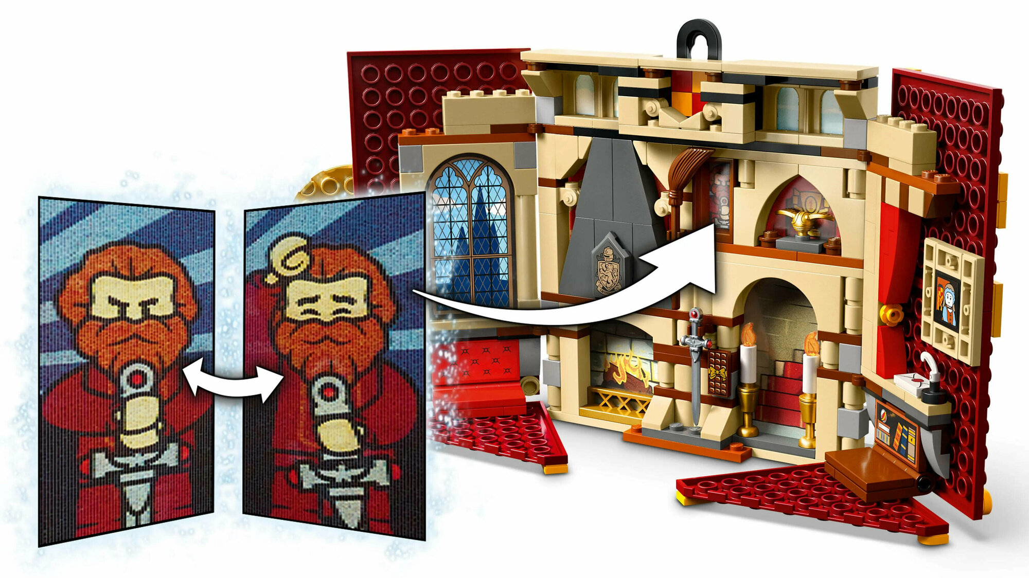 Этот портативный игровой набор является одним из 4 коллекционных баннеров школы Хогвартс. В набор входят минифигурки Гарри Поттера, Анджелины Джонсон и Невилла Лонгботтома, а также Золотой снитч и Меч Гриффиндора для ролевых игр.