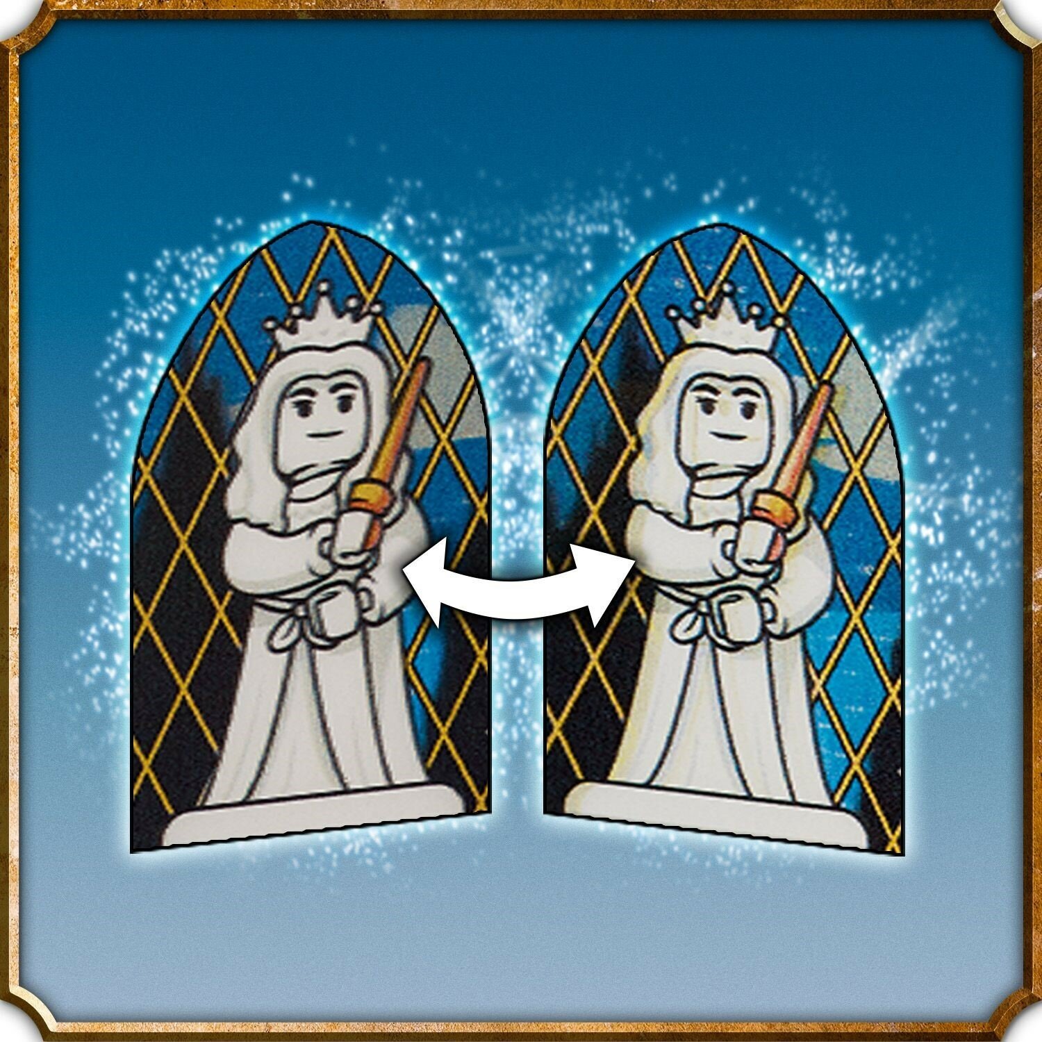 - Аутентичные детали — знамя с изображением герба факультета Когтевран™ открывается, показывая общую комнату со сборным столом, книгой, 2 сиденьями и 2 лампами, а также диадемой Когтеврана.