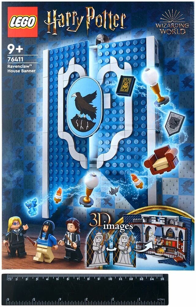 - LEGO® Harry Potter™ Ravenclaw™ House Banner (76411) — с помощью этого сборного знамени дети могут заявить о своей верности Когтеврану. Повесьте его или откройте, чтобы поиграть в детализированной общей комнате.