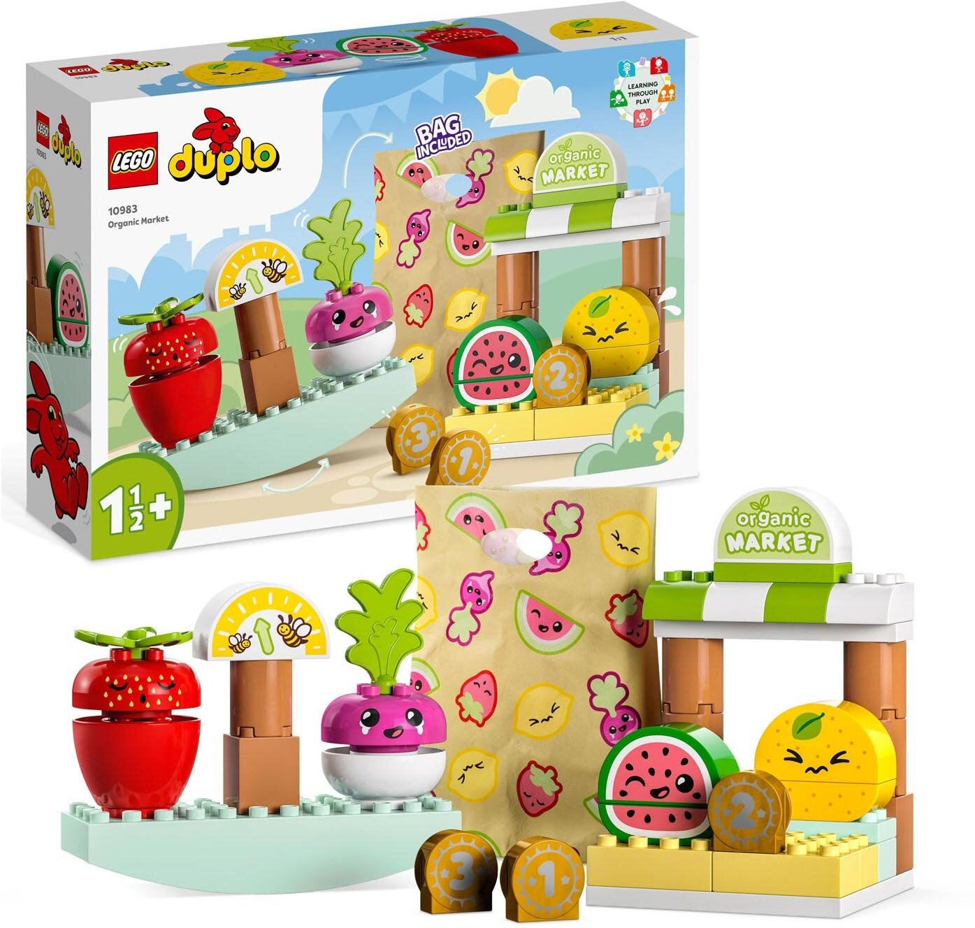- Игрушка "Фермерский рынок" для малышей - Познакомьте маленьких строителей в возрасте от 18 месяцев с увлекательной игрой в магазин с игрушкой LEGO DUPLO "Мой первый органический рынок" (10983).