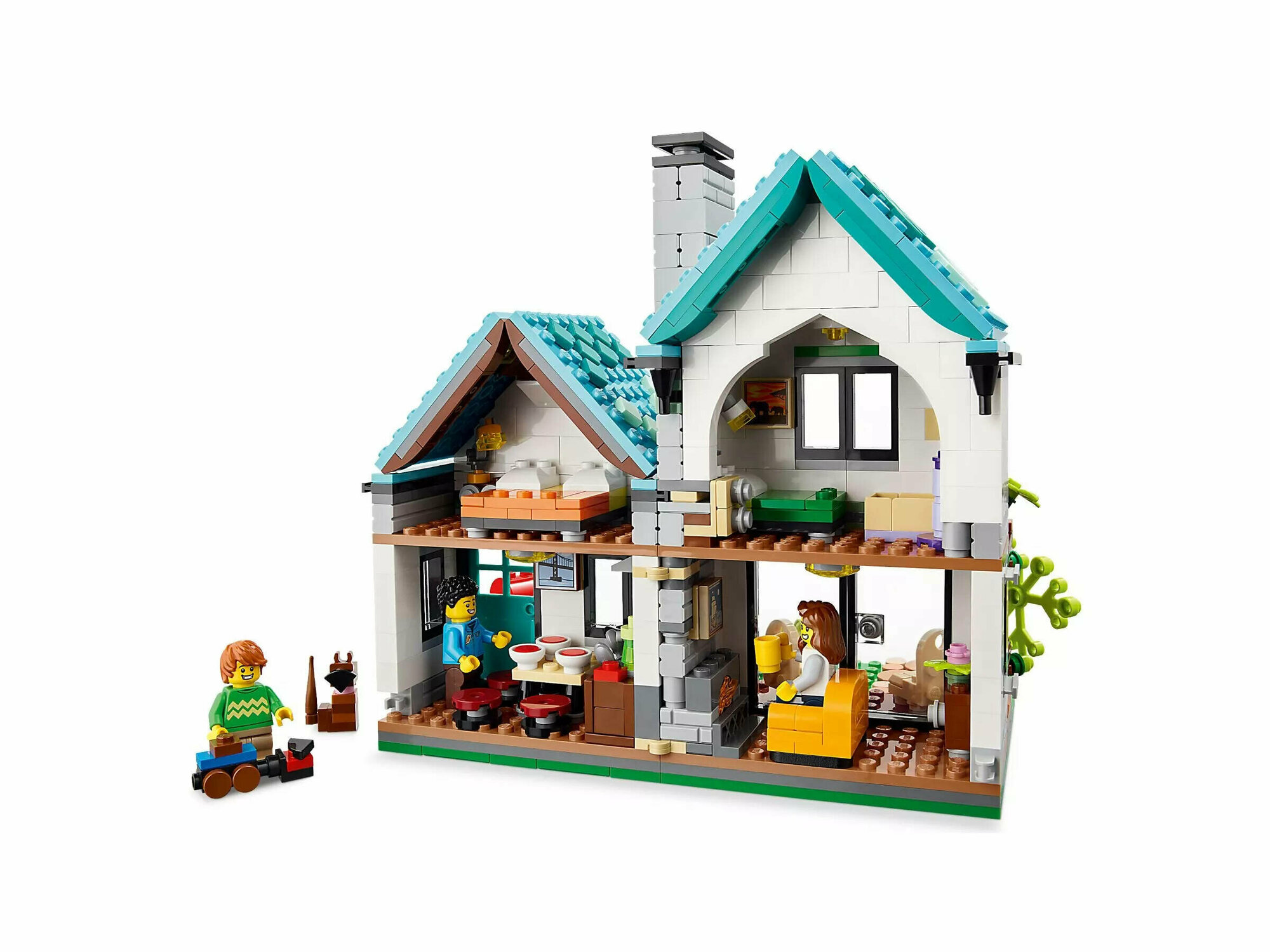 Детям в возрасте от 8 лет будет интересно разыгрывать веселые истории с этим впечатляющим набором Lego Creator 3 в 1 «Уютный дом». В нем есть семейный игрушечный домик с 4 комнатами: кухня, гостиная, главная спальня и детская спальня, а также садовая терраса. Дом раздвигается посередине, чтобы дать детям еще больше возможностей для игр.